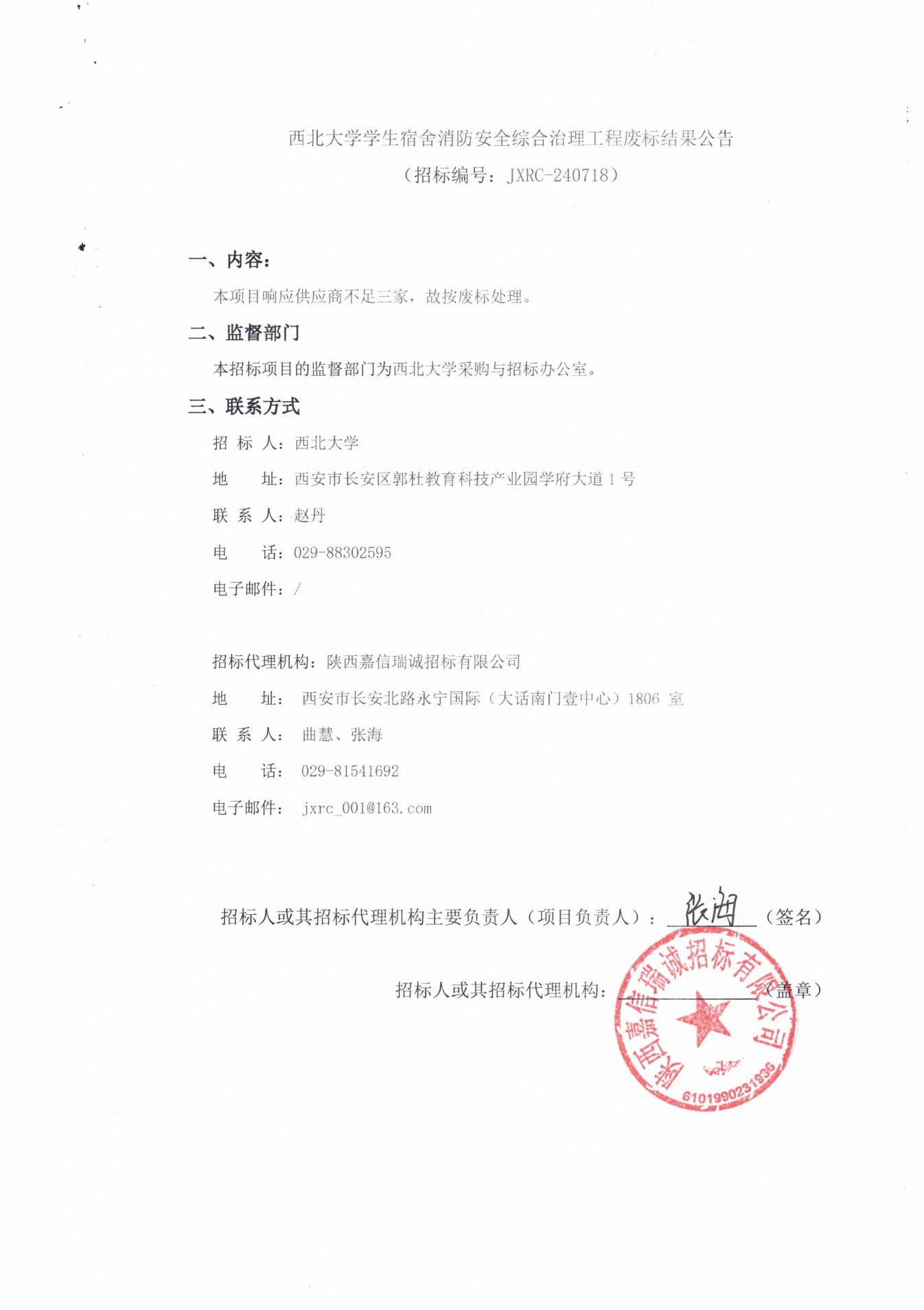 欧冠官方网站学生宿舍消防安全综合治理工程废标结果公告