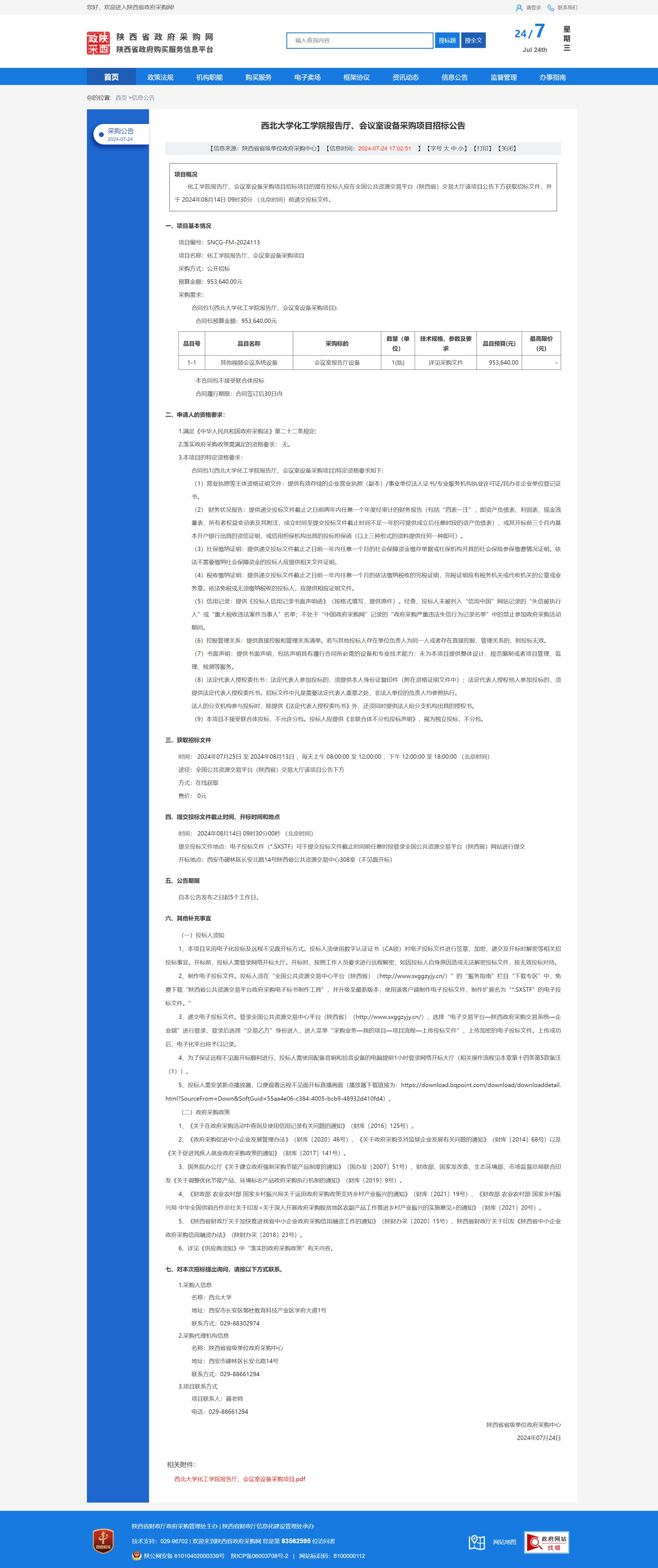欧冠官方网站化工学院报告厅、会议室设备采购项目招标公告 作者: 编辑:采购与招标办公室 时间:2024-07-24 原公告链接:https://www.ccgp-shaanxi.gov.cn/freecms/site/shaanxi/ggxx/info/2024/8a69c43990e021d80190e2424f98406d.html?noticeType=001011¬iceId=9ce13ca5-499d-11ef-b8b6-08c0eb20c666