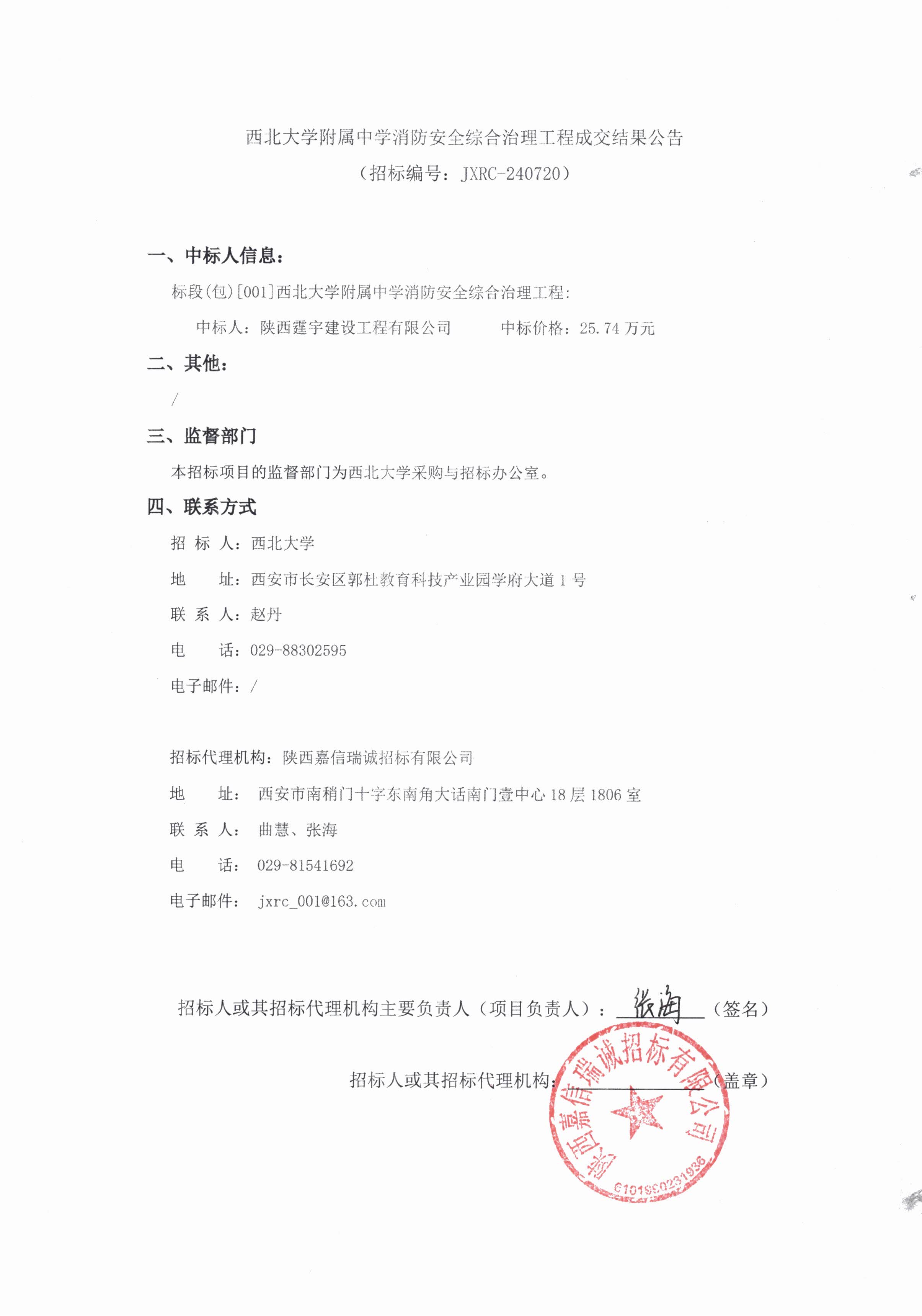 欧冠官方网站附属中学消防安全综合治理工程成交结果公告