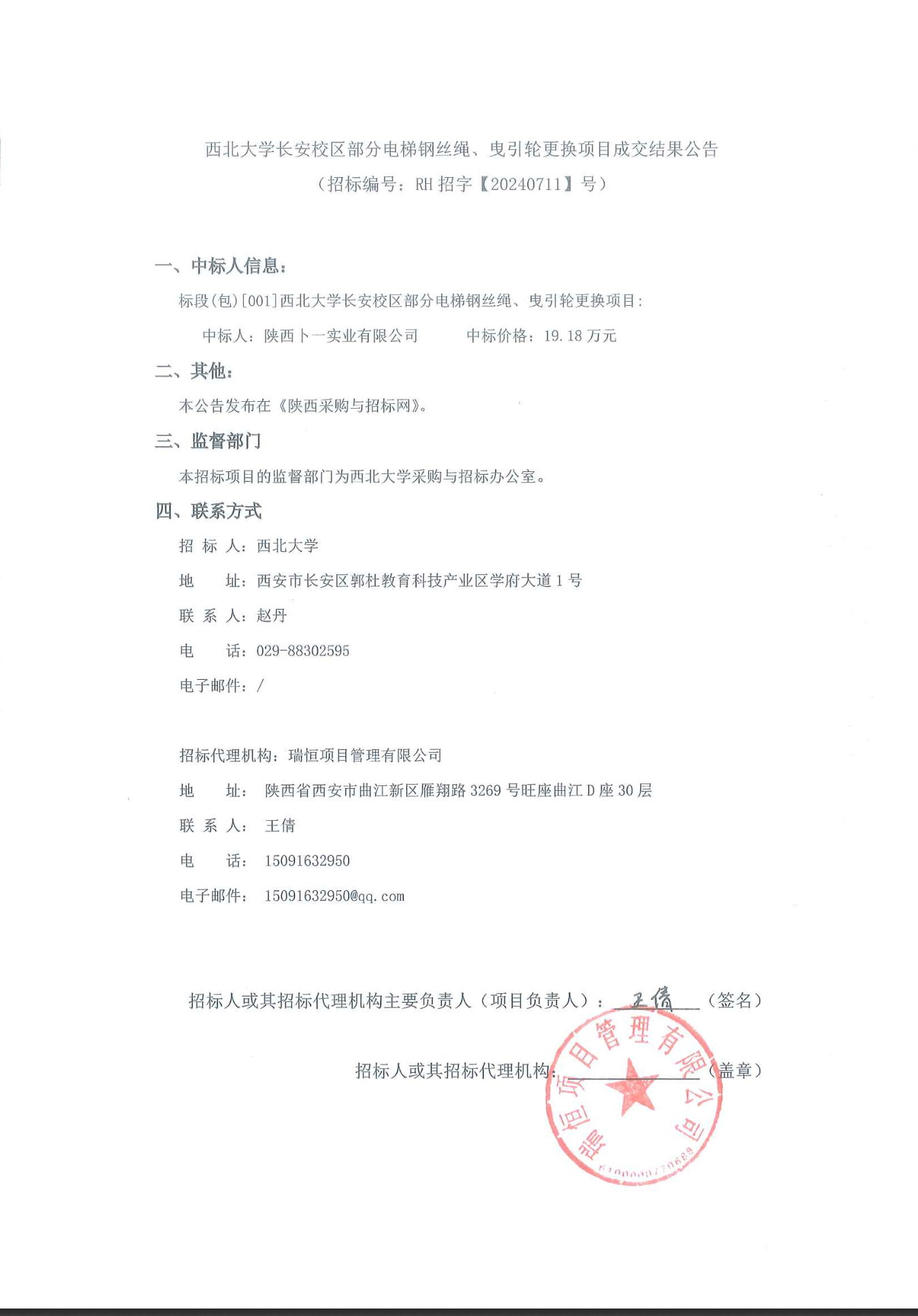 欧冠官方网站长安校区部分电梯钢丝绳、曳引轮更换项目成交结果公告
