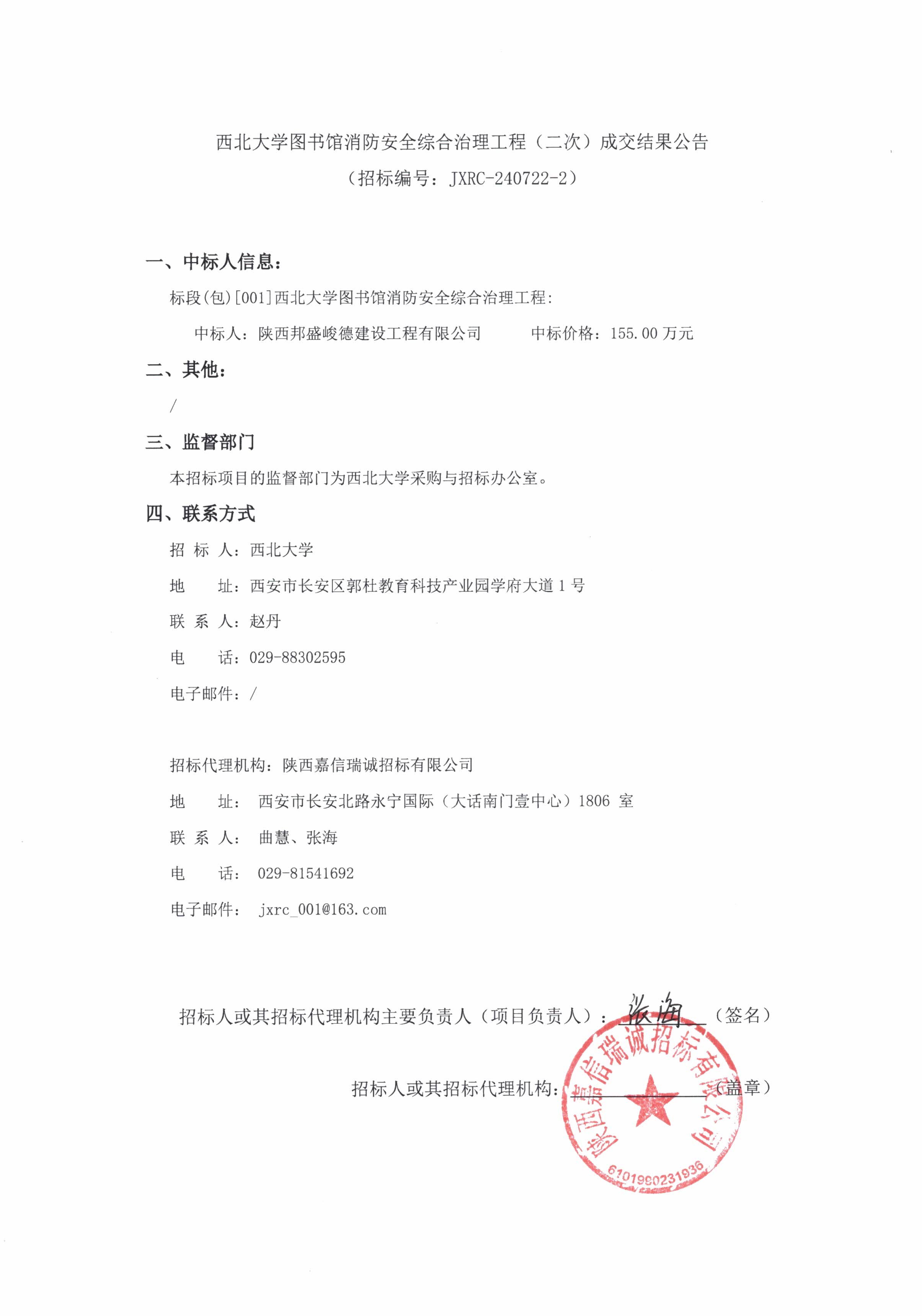 欧冠官方网站图书馆消防安全综合治理工程(二次)成交结果公告