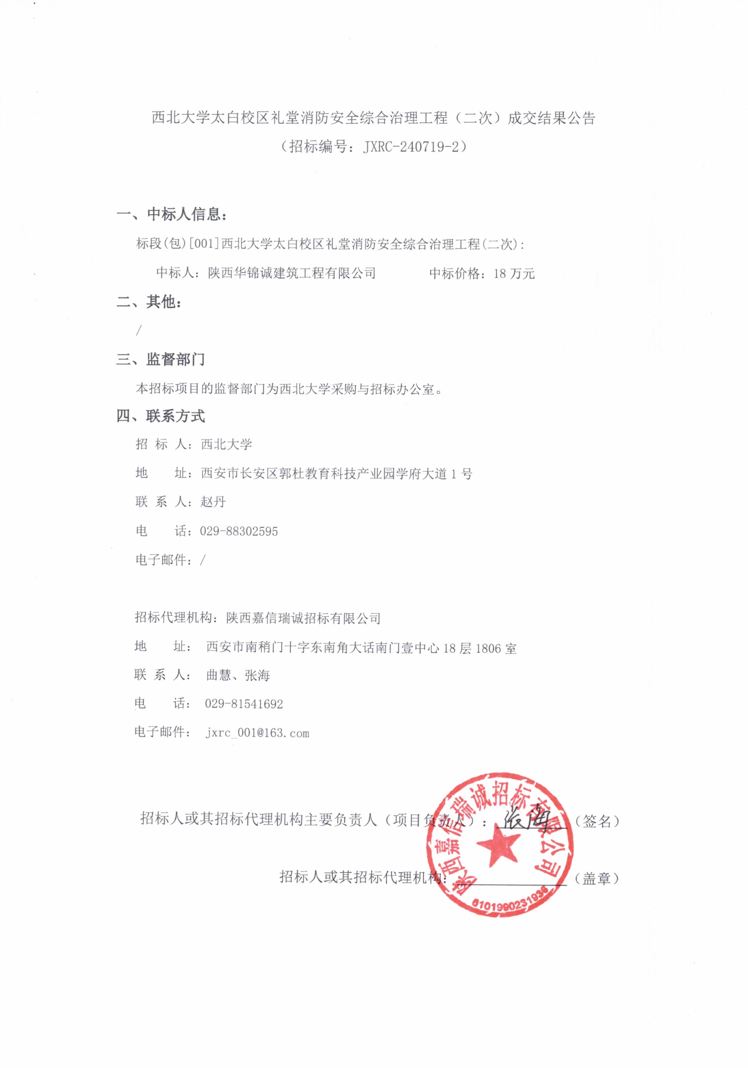 欧冠官方网站太白校区礼堂消防安全综合治理工程(二次)成交结果公告