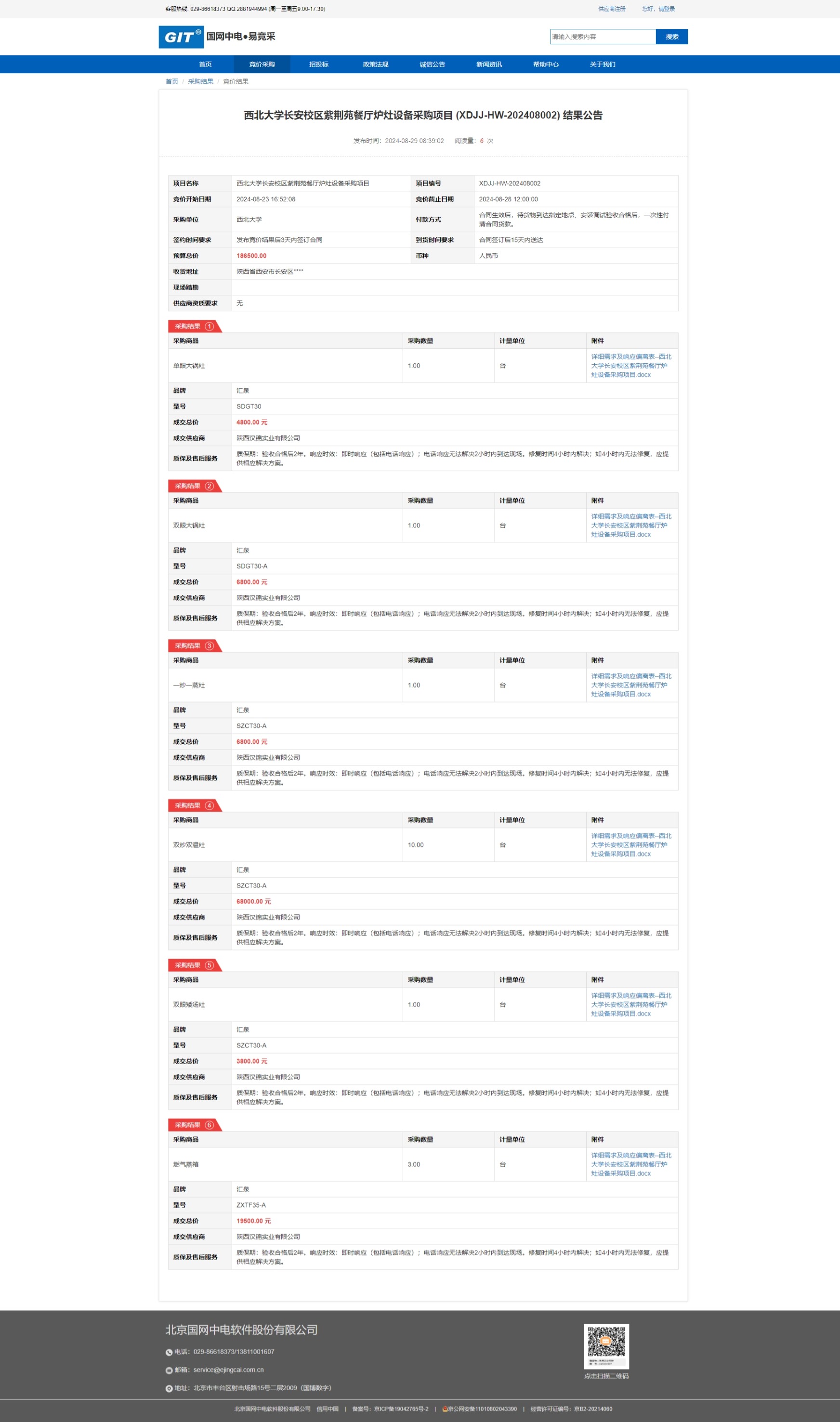 欧冠官方网站长安校区紫荆苑餐厅炉灶设备采购项目 (XDJJ-HW-202408002) 竞价结果公告 作者: 编辑:采购与招标办公室 时间:2024-08-29 原公告链接:https://www.ejingcai.com.cn/site/bidding/detail/12244