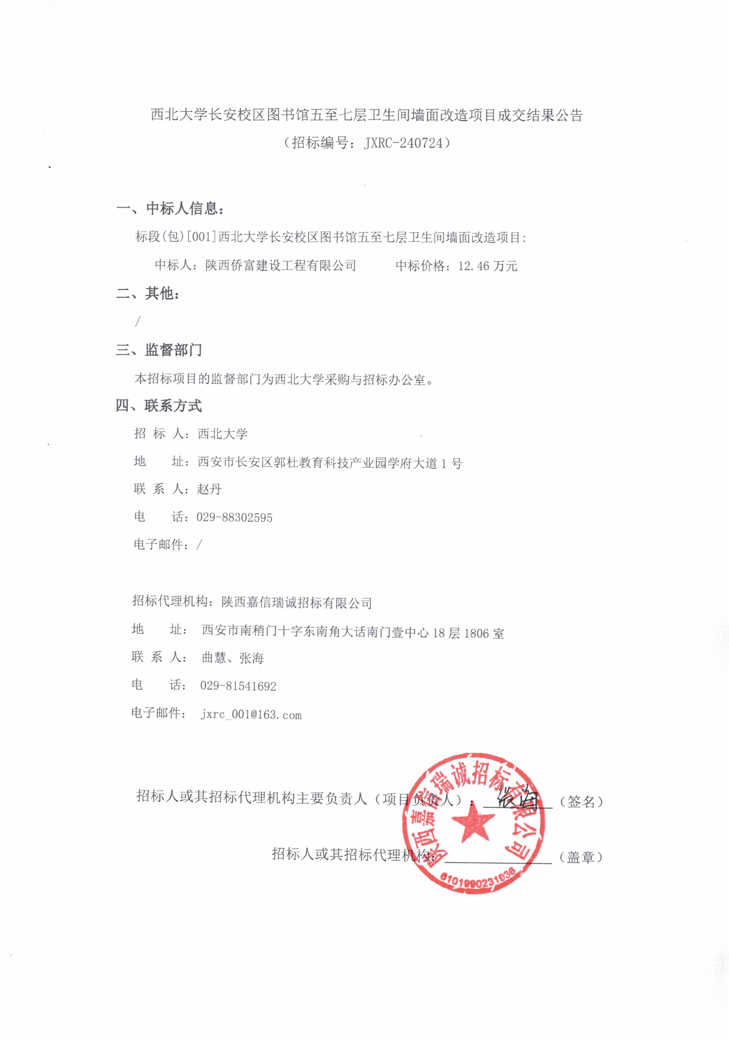 欧冠官方网站长安校区图书馆五至七层卫生间墙面改造项目成交结果公告