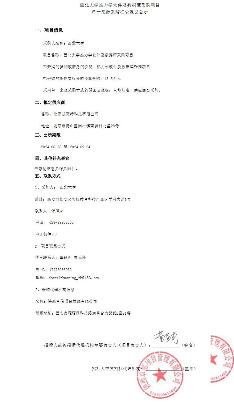欧冠官方网站热力学软件及数据库采购项目单一来源采购征求意见公示
