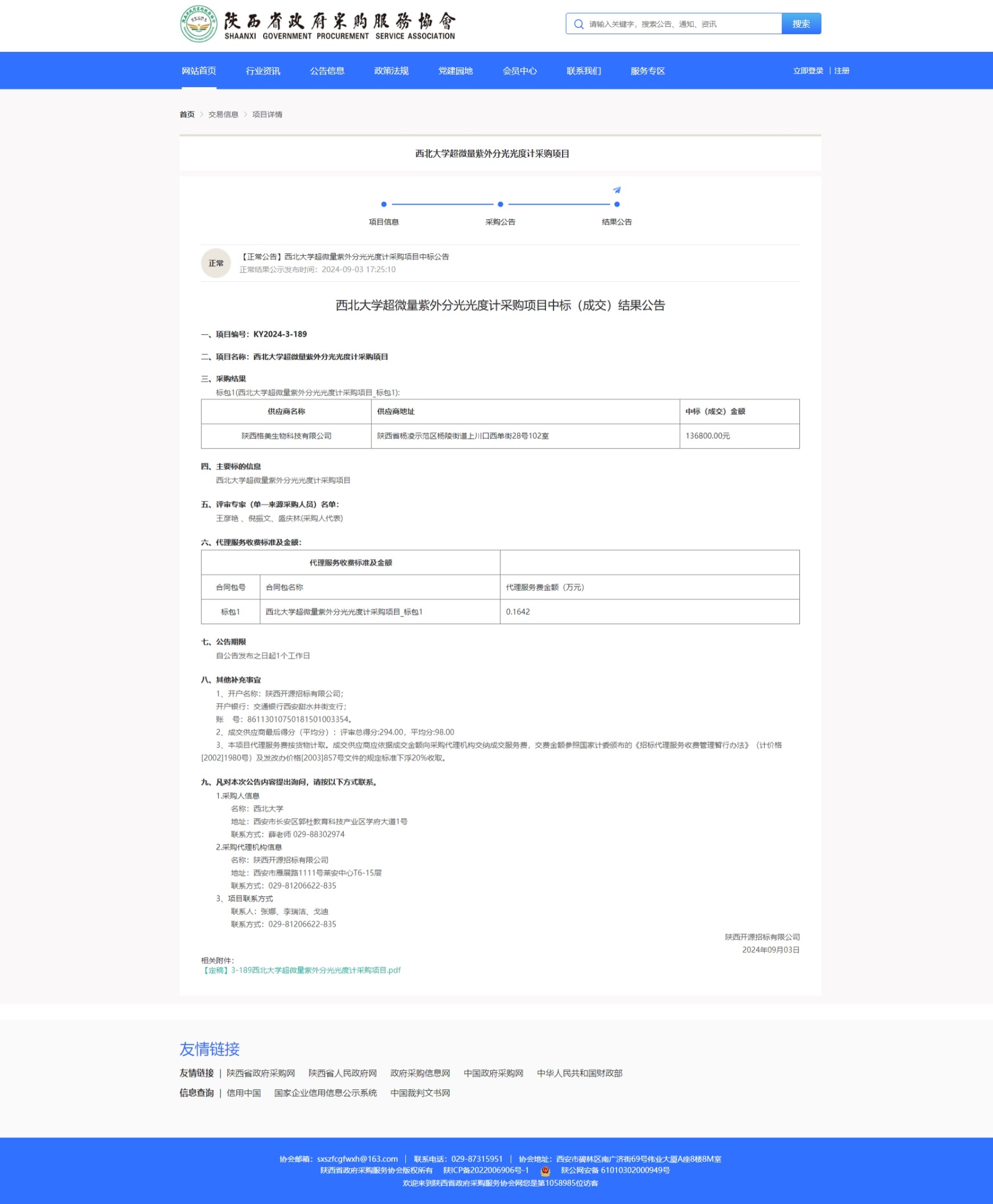 欧冠官方网站超微量紫外分光光度计采购项目中标(成交)结果公告 作者: 编辑:采购与招标办公室 时间:2024-09-04 原公告链接:https://www.sxszfcgfwxh.cn/#/tender-vTradeAnnouncement-publicity?tenderProjectId=1826435442958446594&rootId=1549250580985765889