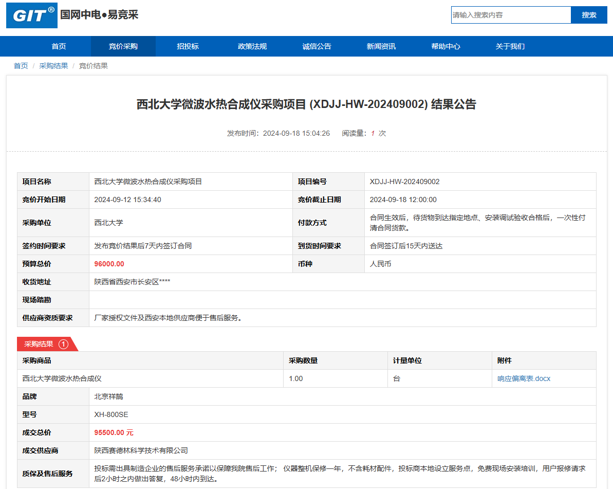欧冠官方网站微波水热合成仪采购项目 (XDJJ-HW-202409002)竞价结果公告 作者: 编辑: 时间:2024-09-18 原公告链接:https://www.ejingcai.com.cn/site/bidding/detail/12667
