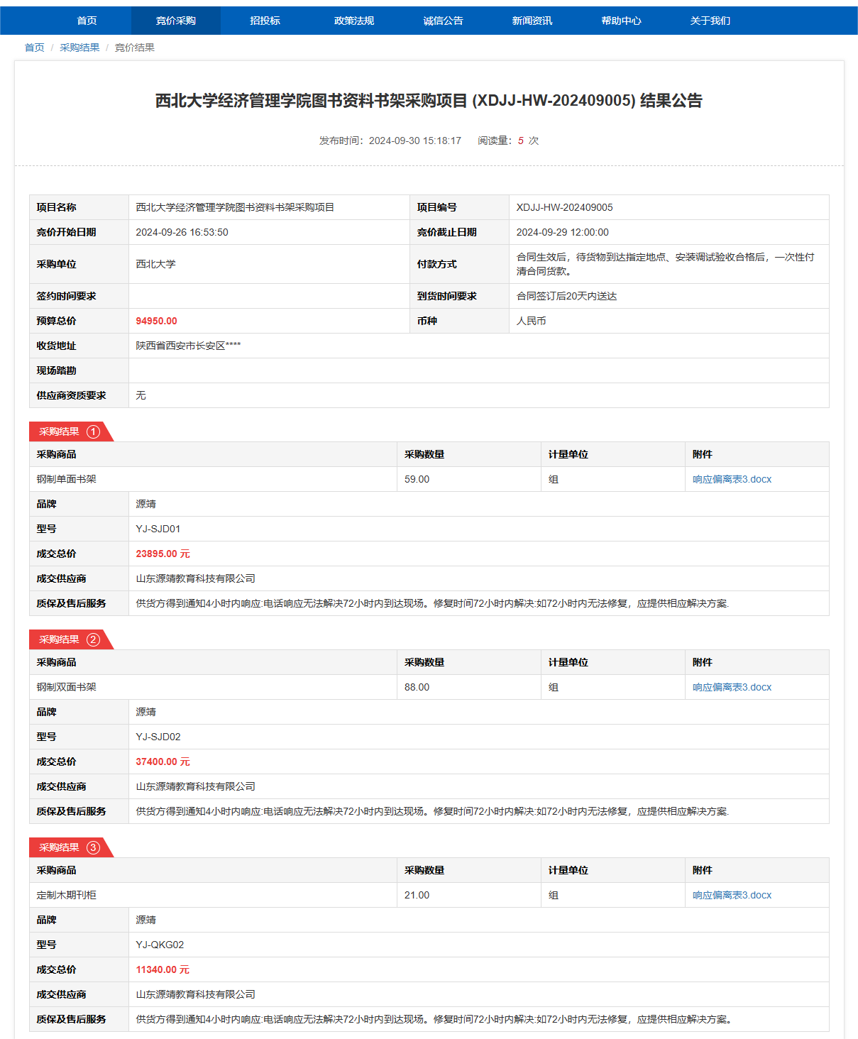 欧冠官方网站经济管理学院图书资料书架采购项目(XDJJ-HW-202409005)竞价结果公告 作者: 编辑: 时间:2024-09-30 原公告链接:https://www.ejingcai.com.cn/site/bidding/detail/13023