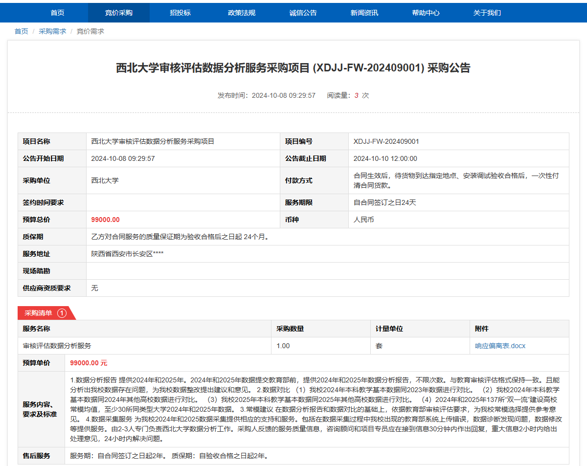 欧冠官方网站审核评估数据分析服务采购项目(XDJJ-FW-202409001)竞价采购公告 作者: 编辑: 时间:2024-10-08 原公告链接:https://www.ejingcai.com.cn/site/bidding/detail/13071