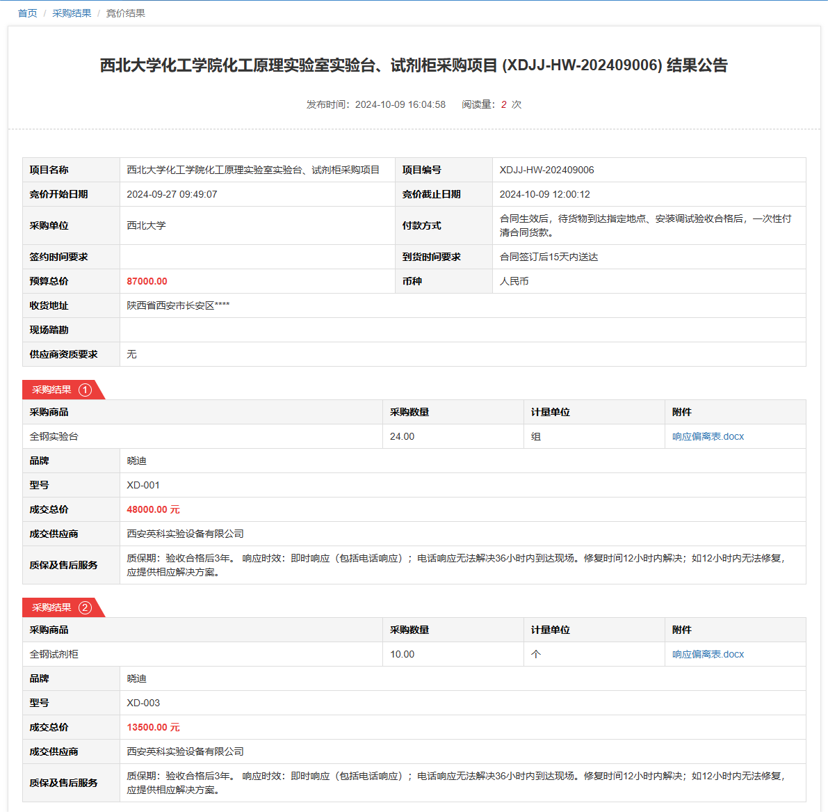 欧冠官方网站化工学院化工原理实验室实验台、试剂柜采购项目(XDJJ-HW-202409006)竞价结果公告 作者: 编辑: 时间:2024-10-09 原公告链接:https://www.ejingcai.com.cn/site/bidding/detail/13139