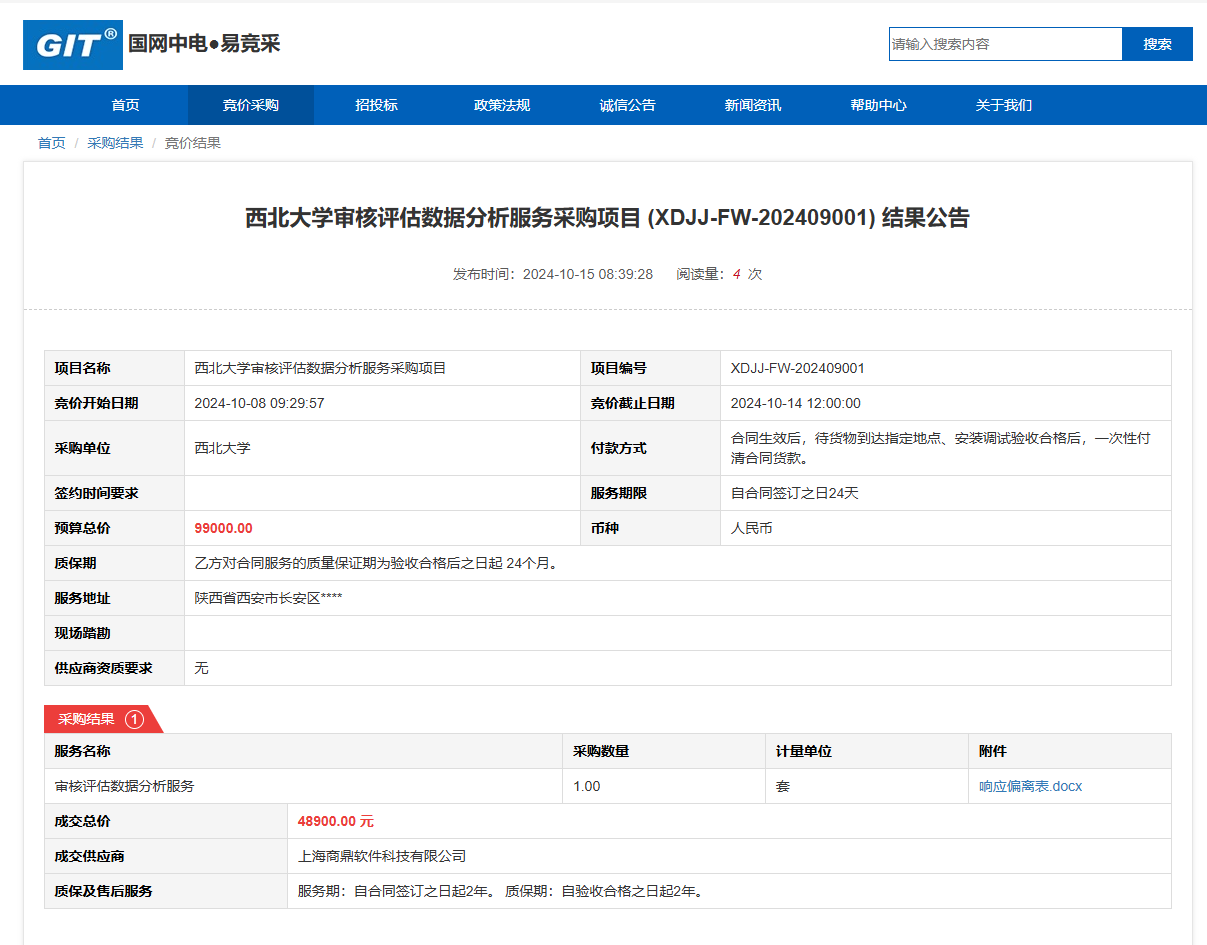 欧冠官方网站审核评估数据分析服务采购项目(XDJJ-FW-202409001)竞价结果公告 作者:采购与招标办公室 编辑: 时间:2024-10-15 原公告链接:https://www.ejingcai.com.cn/site/bidding/detail/13296
