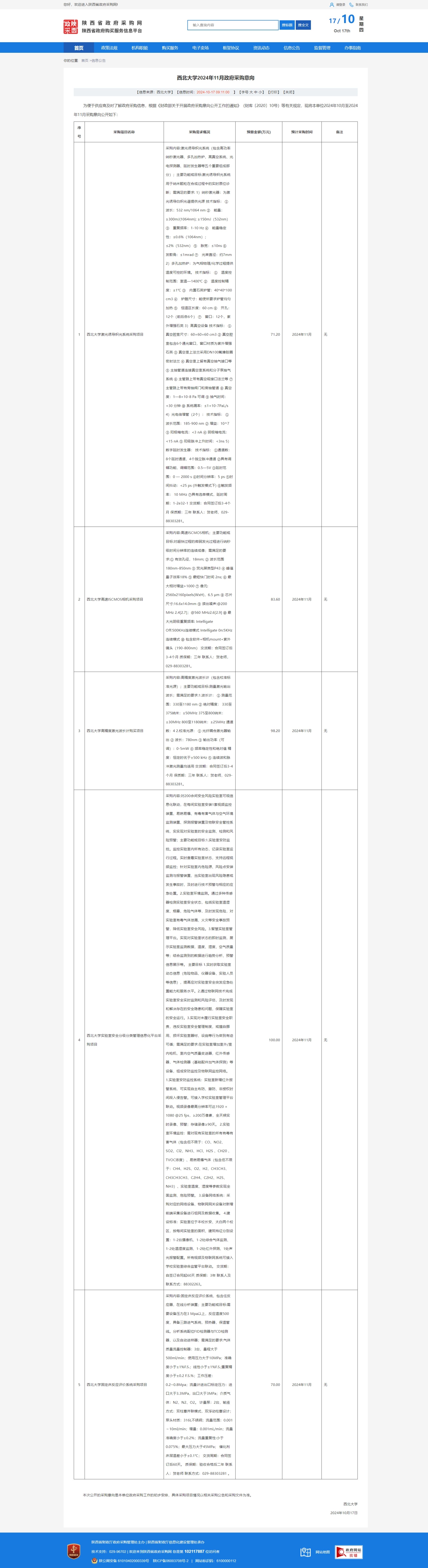 欧冠官方网站2024年11月政府采购意向 作者: 编辑: 时间:2024-10-17 原公告链接:https://www.ccgp-shaanxi.gov.cn/freecms/site/shaanxi/ggxx/info/2024/8a69c95c927dd5a5019293c3c5bd0a4f.html?noticeType=59¬iceId=2fc5b975-8c26-11ef-8063-08c0eb20c666
