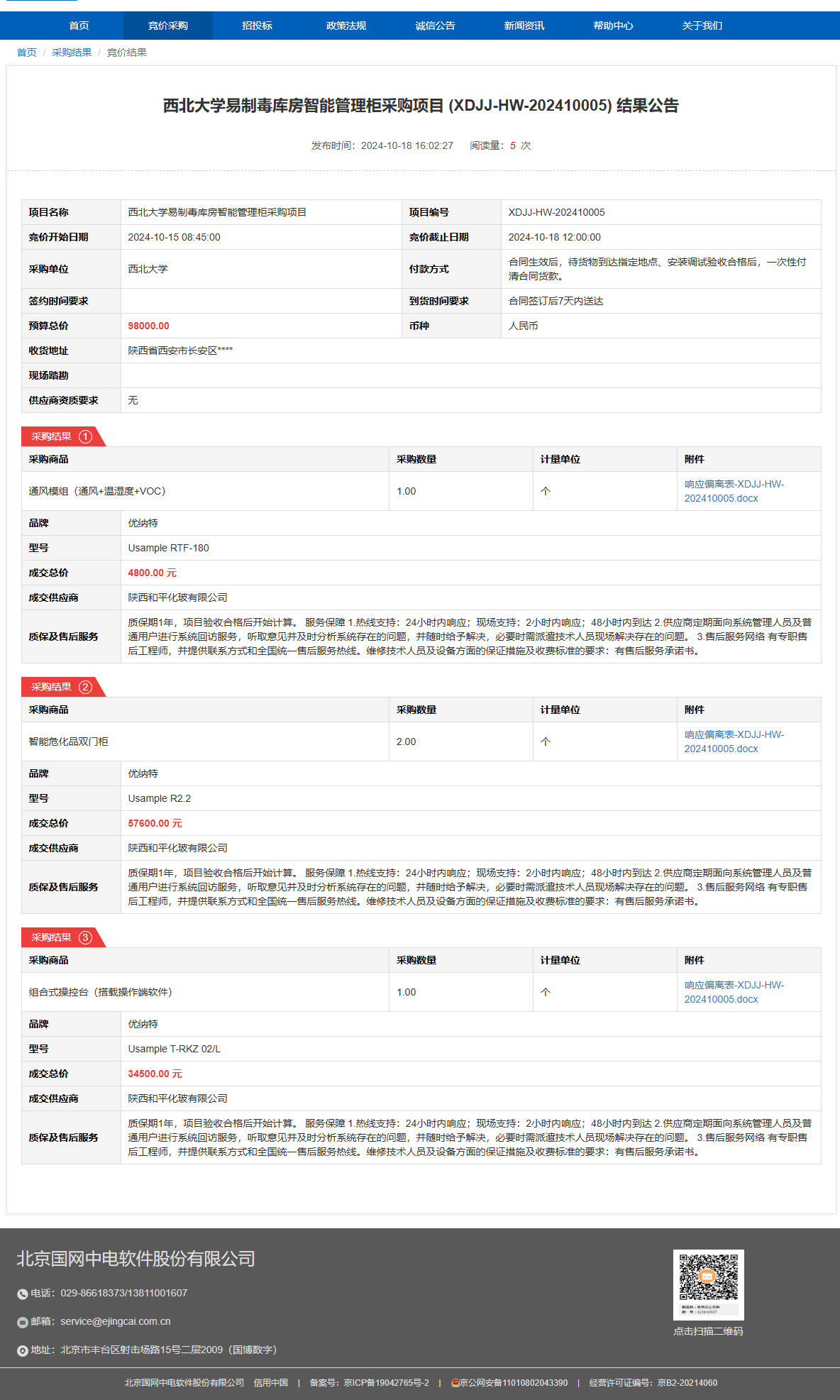欧冠官方网站易制毒库房智能管理柜采购项目(XDJJ-HW-202410005)竞价结果公告 作者:采购与招标办公室 编辑: 时间:2024-10-18 原公告链接:https://www.ejingcai.com.cn/site/bidding/detail/13487