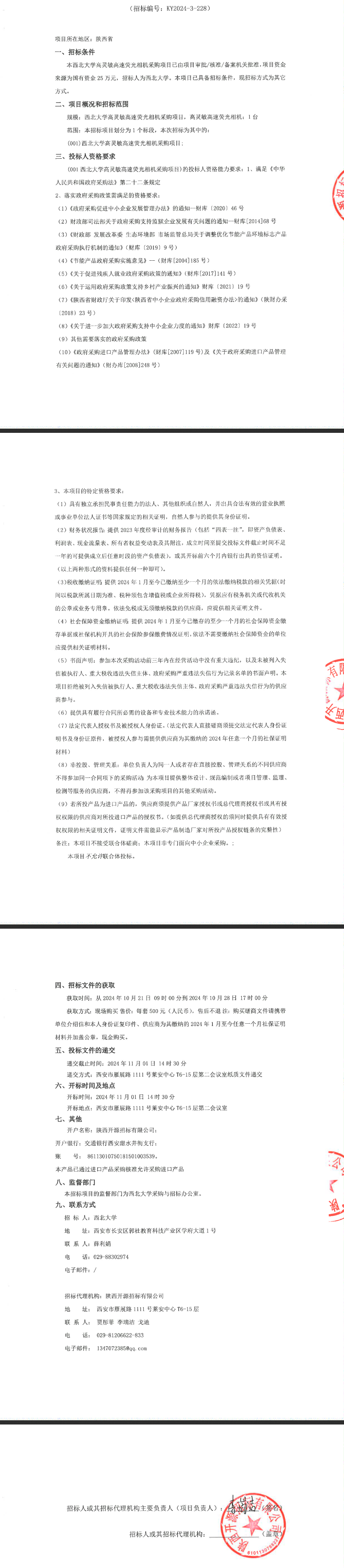 欧冠官方网站高灵敏高速荧光相机采购项目竞争性磋商公告 作者: 编辑:采购与招标办公室 时间:2024-10-21 原公告链接:http://bulletin.sntba.com/biddingBulletin/2024-10-21/1932717.html