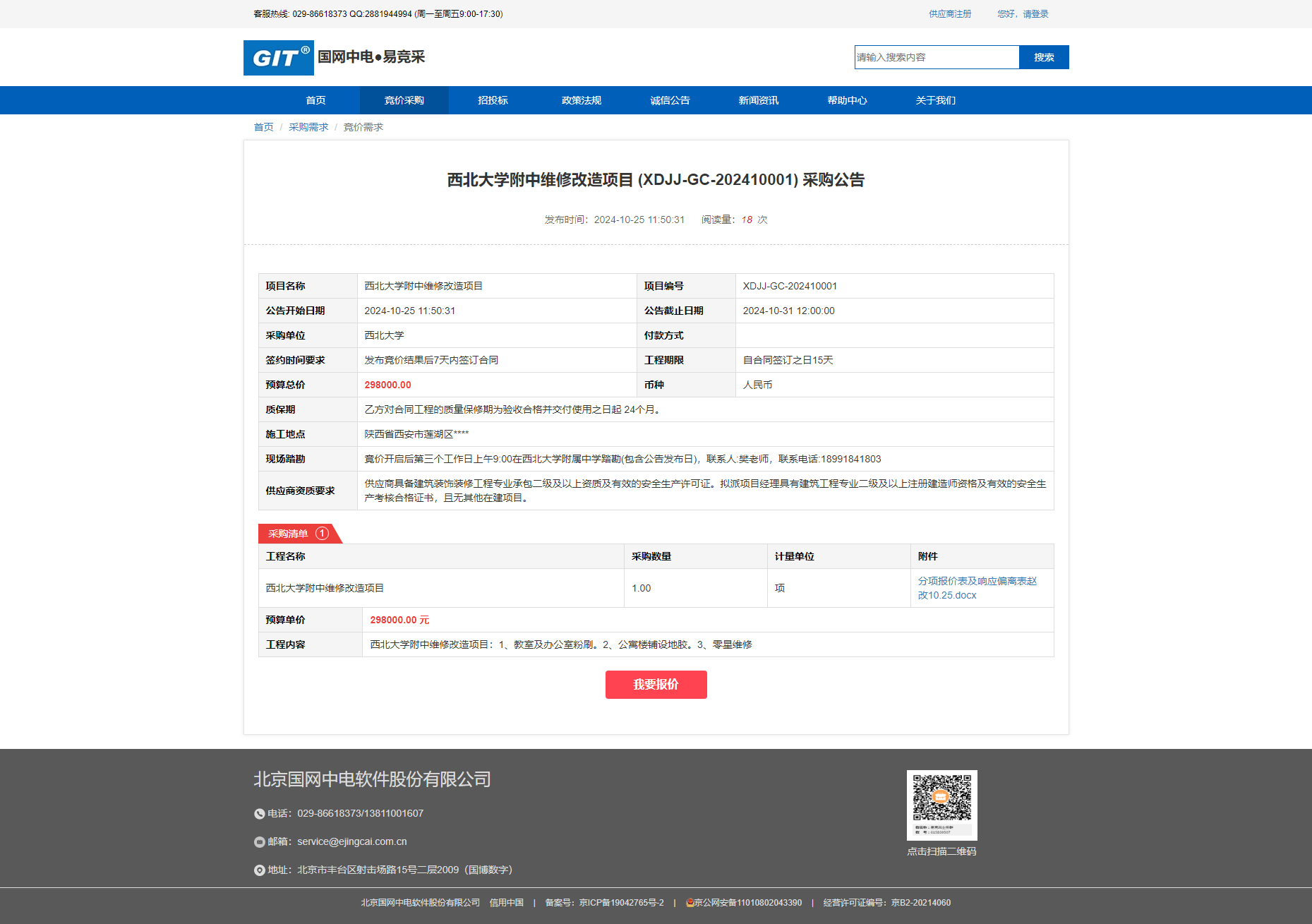 欧冠官方网站附中维修改造项目 (XDJJ-GC-202410001) 采购公告