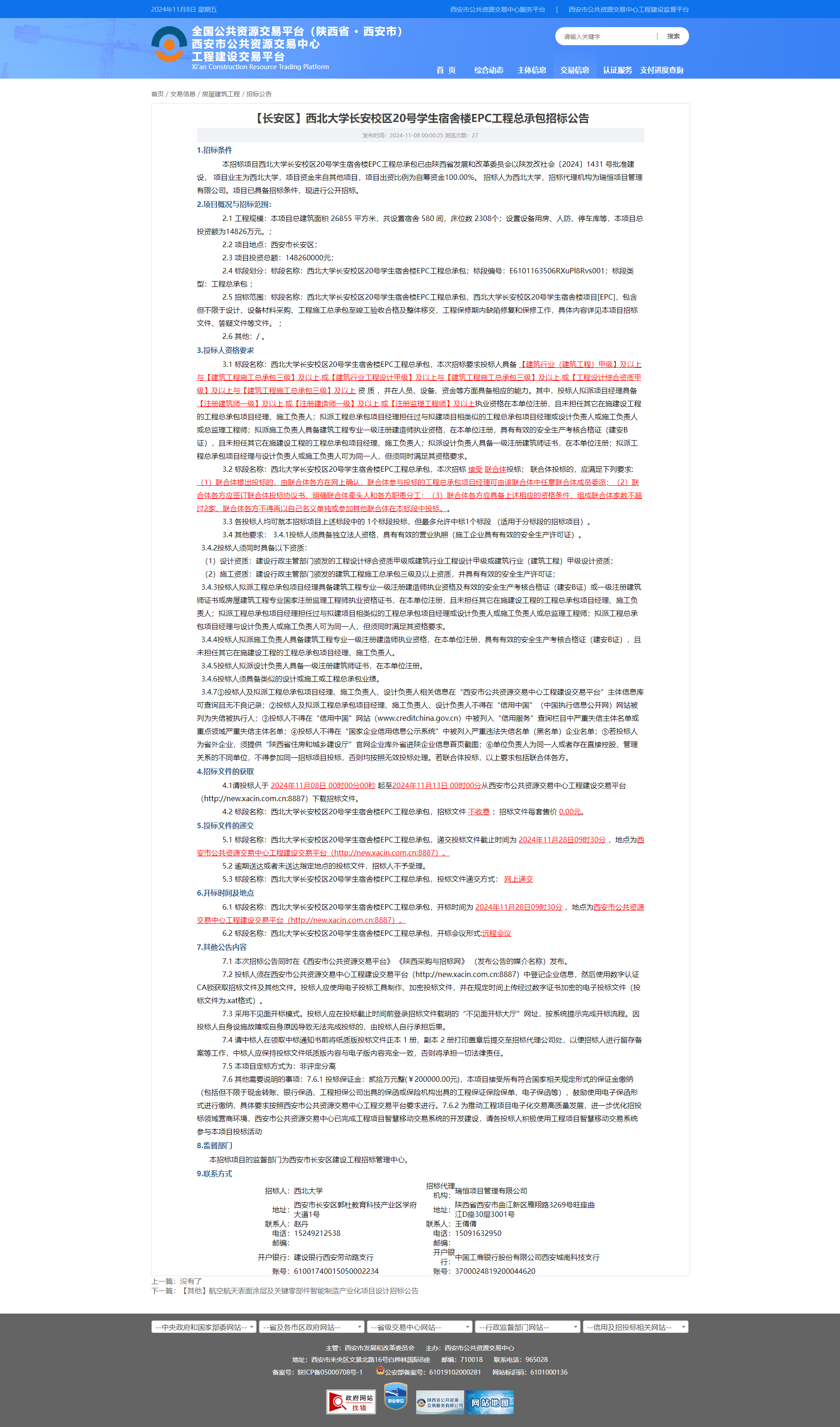 欧冠官方网站长安校区20号学生宿舍楼EPC工程总承包招标公告