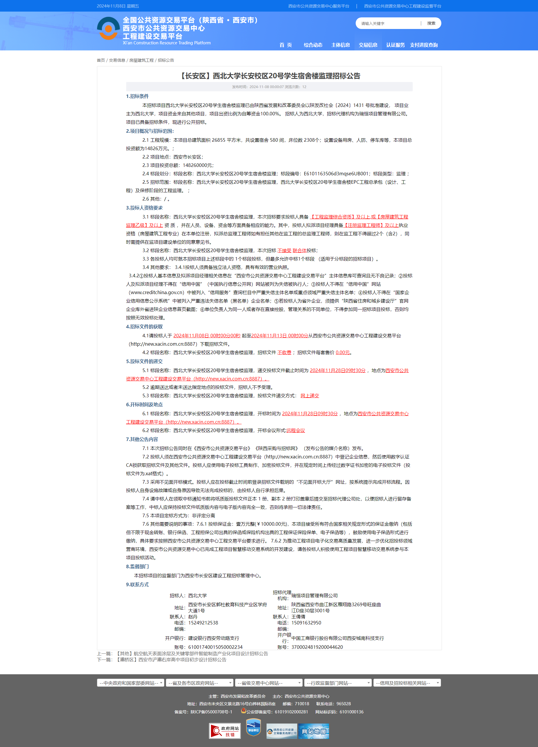 欧冠官方网站长安校区20号学生宿舍楼监理招标公告