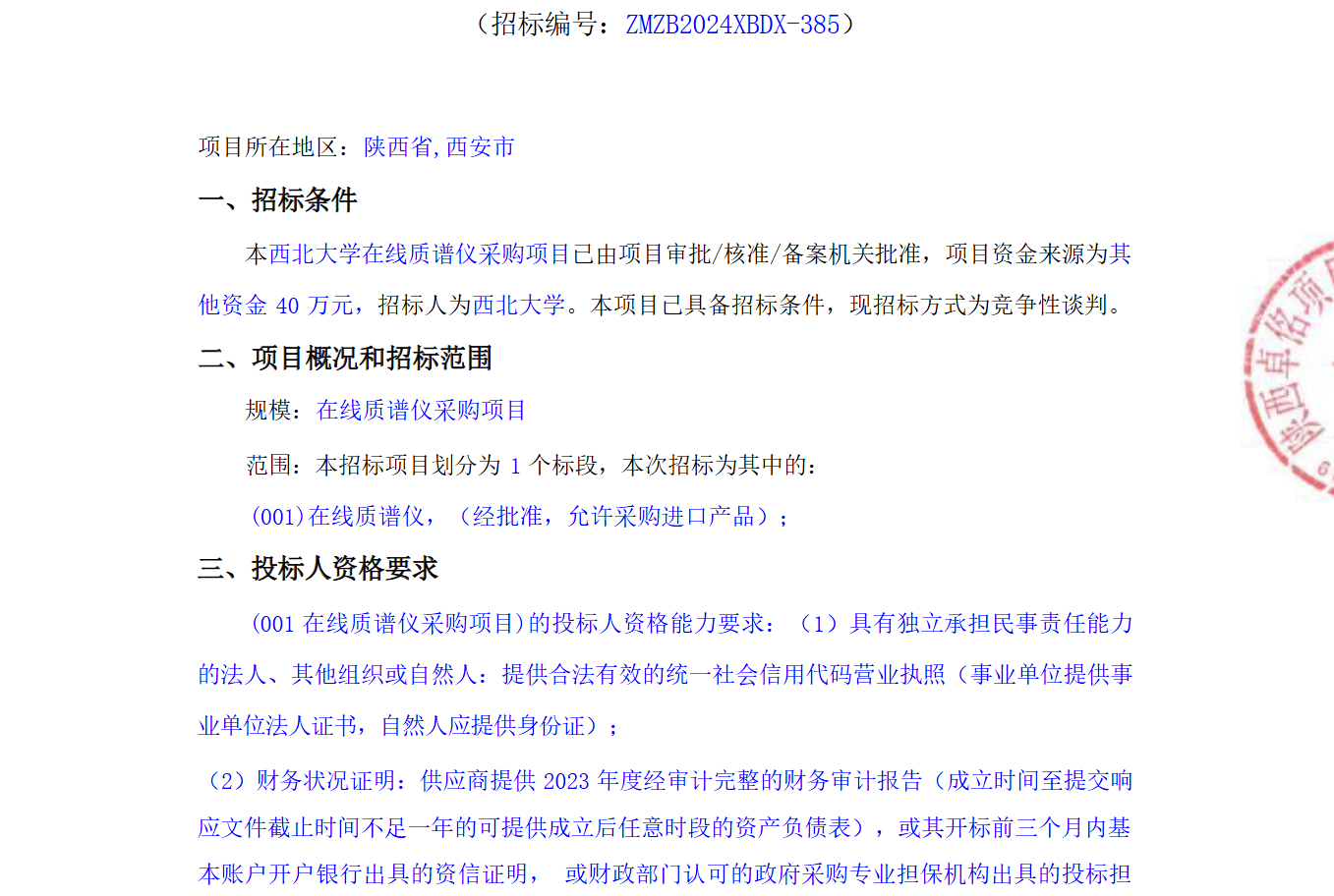 欧冠官方网站在线质谱仪采购项目竞争性谈判公告 作者: 编辑:薛利娟 时间:2024-11-12 原公告链接:http://bulletin.sntba.com/biddingBulletin/2024-11-12/1982831.html