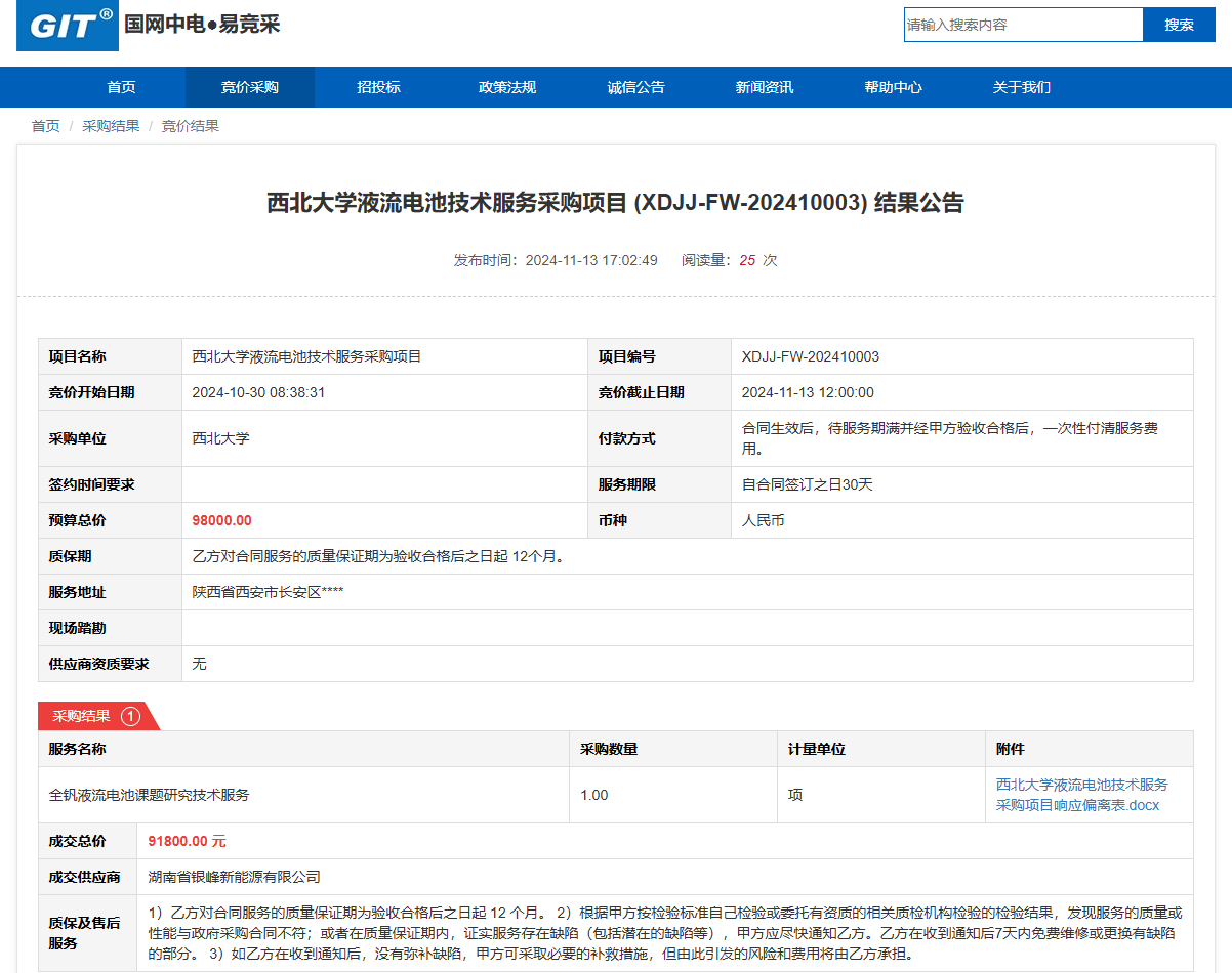 欧冠官方网站液流电池技术服务采购项目(XDJJ-FW-202410003)竞价结果公告 作者:采购与招标办公室 编辑: 时间:2024-11-14 原公告链接:https://www.ejingcai.com.cn/site/bidding/detail/14829