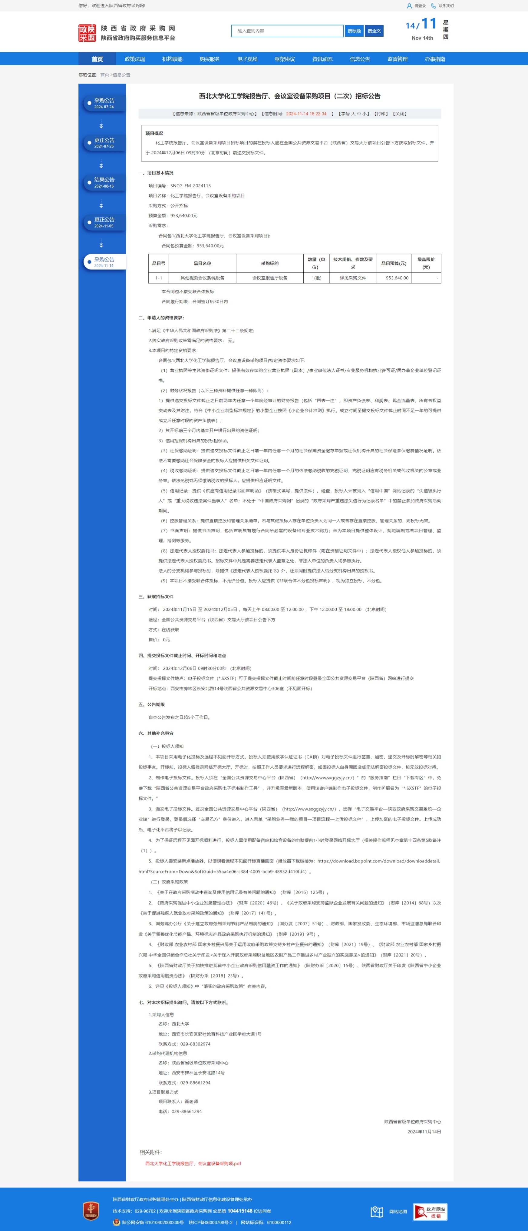 欧冠官方网站化工学院报告厅、会议室设备采购项目(二次)招标公告 作者: 编辑:薛利娟 时间:2024-11-14 原公告链接:https://www.ccgp-shaanxi.gov.cn/freecms/site/shaanxi/ggxx/info/2024/8a69c44e9218572b0193285a44d64ac8.html?noticeType=001011¬iceId=2affca7b-a263-11ef-8063-08c0eb20c666