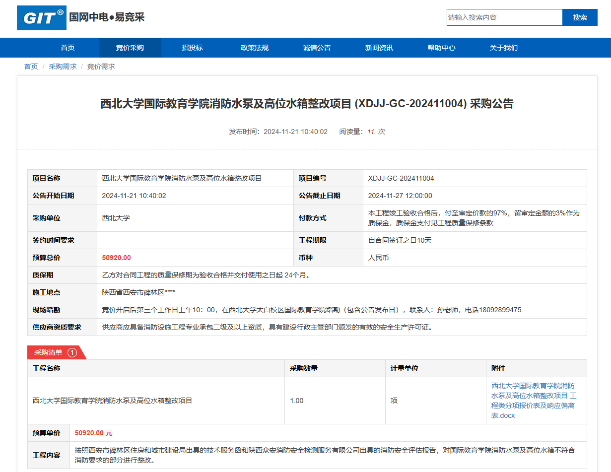 欧冠官方网站国际教育学院消防水泵及高位水箱整改项目(XDJJ-GC-202411004)竞价采购公告 作者:采购与招标办公室 编辑: 时间:2024-11-21 原公告链接:https://www.ejingcai.com.cn/site/bidding/detail/15178