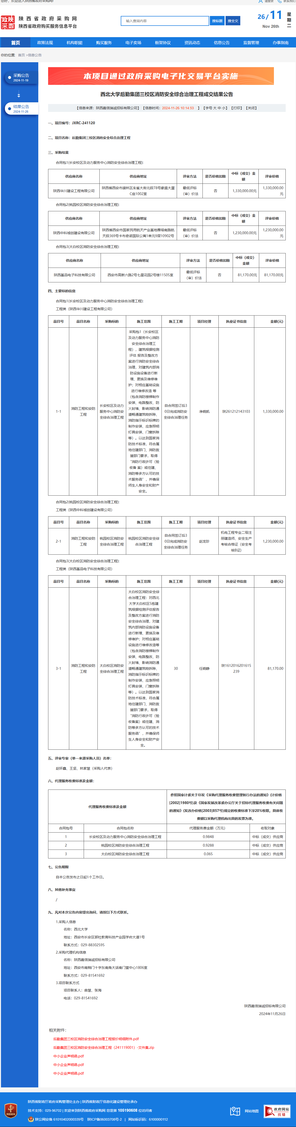 欧冠官方网站后勤集团三校区消防安全综合治理工程成交结果公告