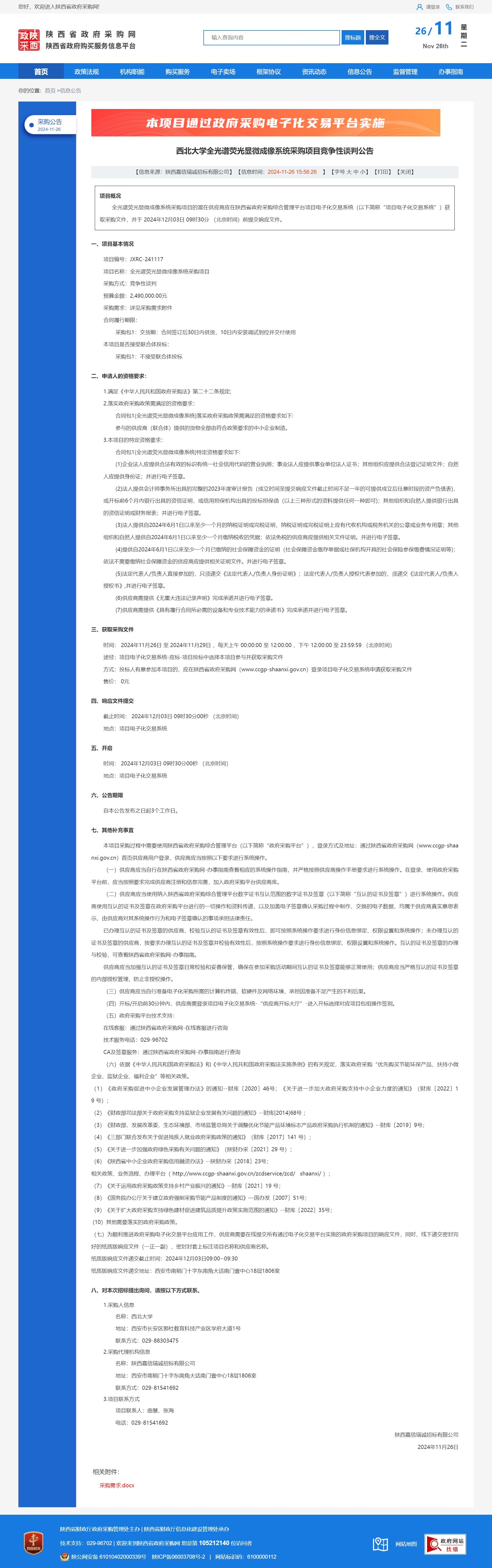 欧冠官方网站全光谱荧光显微成像系统采购项目竞争性谈判公告 作者:采购与招标办公室 编辑: 时间:2024-11-26 原公告链接:https://www.ccgp-shaanxi.gov.cn/freecms/site/shaanxi/ggxx/info/2024/8a69c95d921859f001936768d6964ed3.html?noticeType=001013¬iceId=86c4a750-abcd-11ef-8063-08c0eb20c666