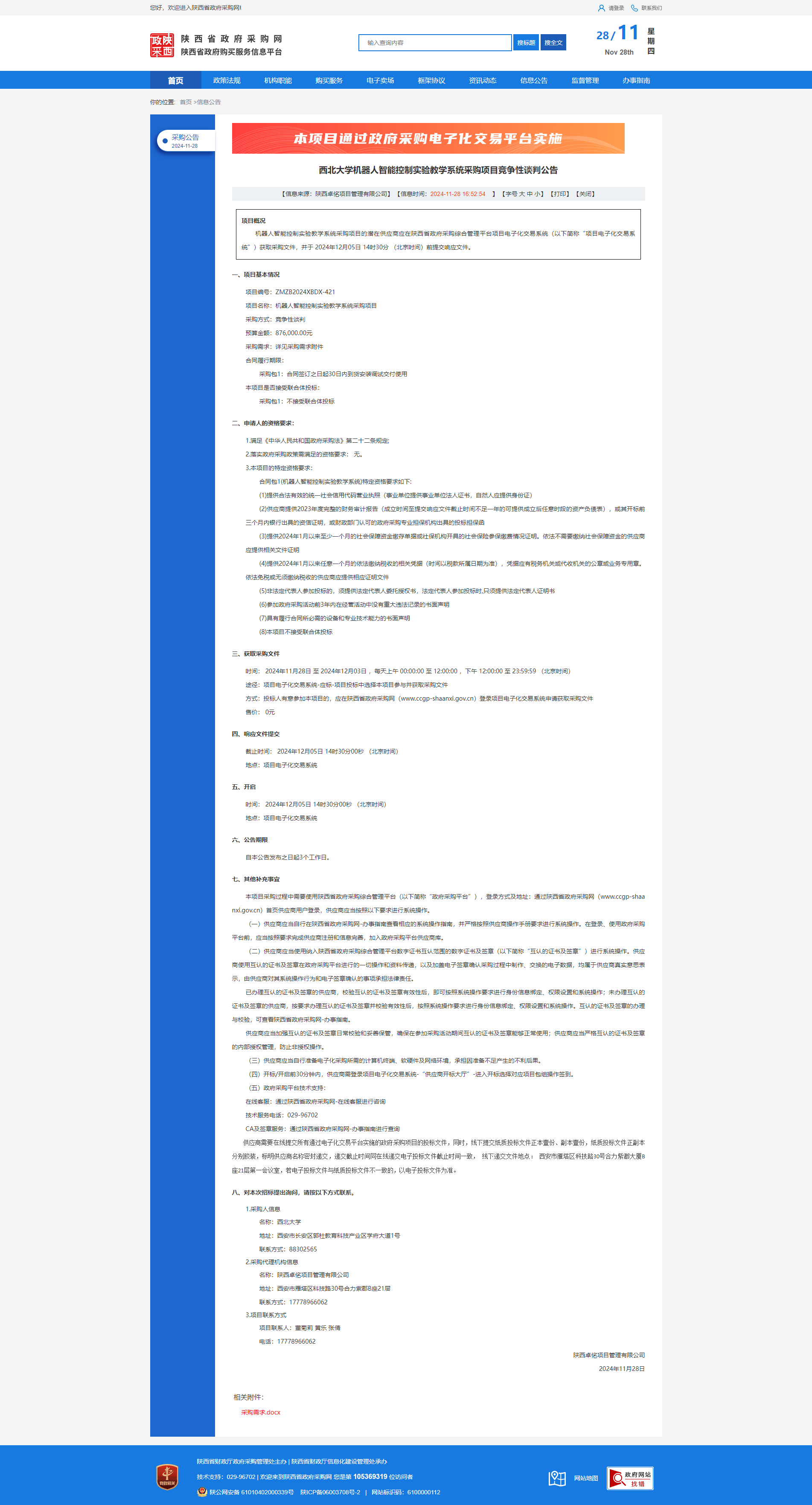 欧冠官方网站机器人智能控制实验教学系统采购项目竞争性谈判公告