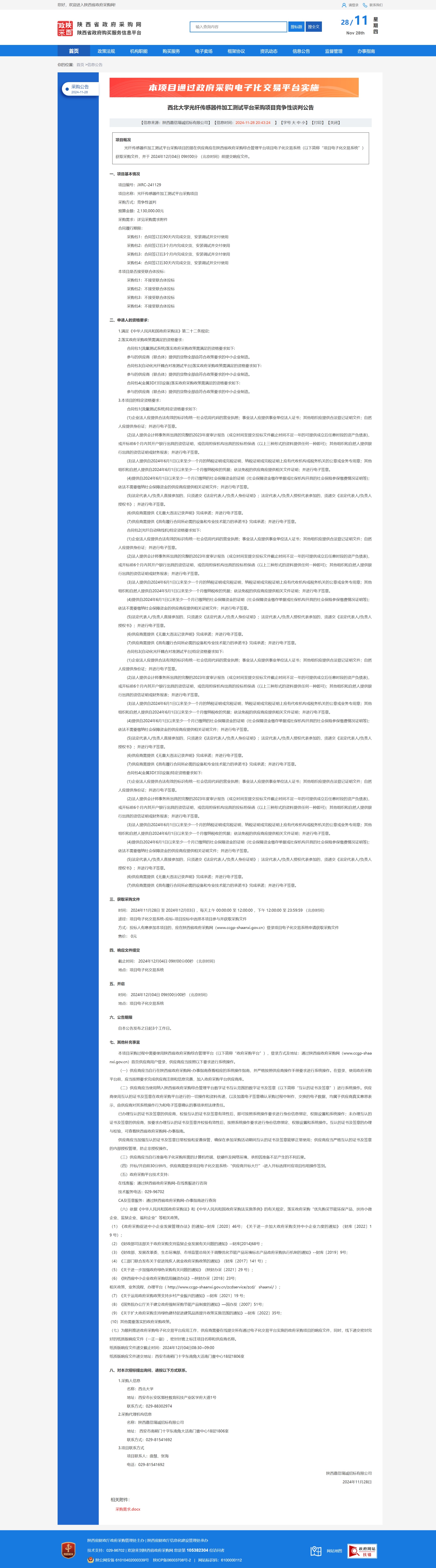 欧冠官方网站光纤传感器件加工测试平台采购项目竞争性谈判公告 作者: 编辑:薛利娟 时间:2024-11-28 原公告链接:https://www.ccgp-shaanxi.gov.cn/freecms/site/shaanxi/ggxx/info/2024/8a69c95d921859f0019372bce9754d0c.html?noticeType=001013¬iceId=f3d424e2-ad87-11ef-8063-08c0eb20c666
