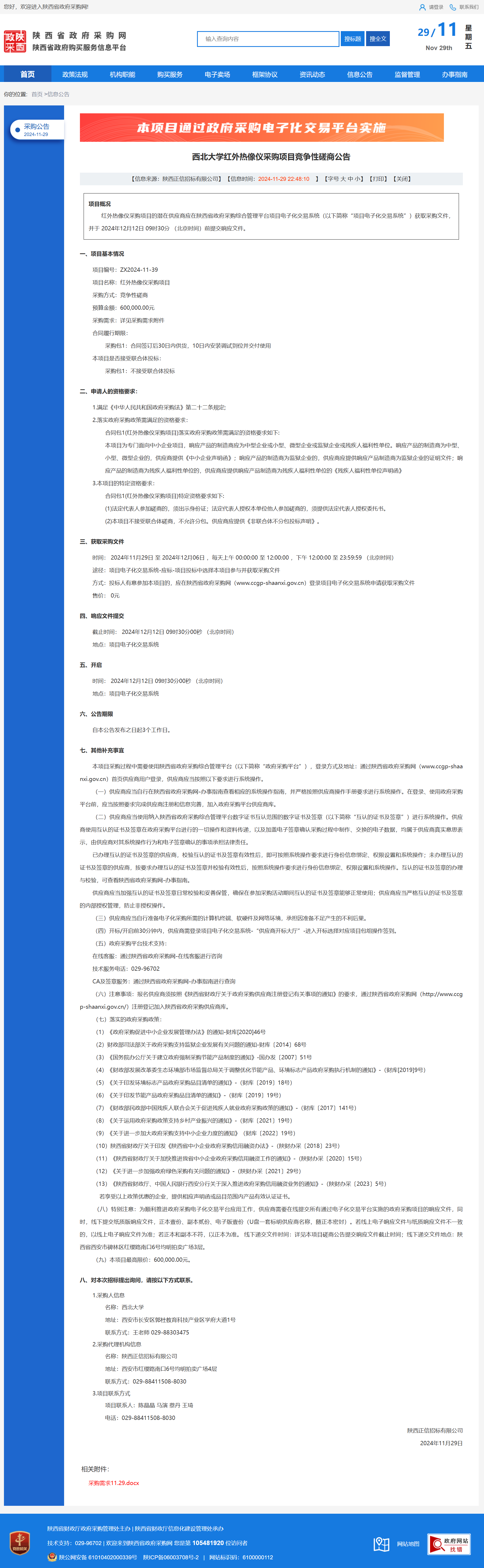 欧冠官方网站红外热像仪采购项目竞争性磋商公告 作者:采购与招标办公室 编辑: 时间:2024-11-29 原公告链接:http://www.ccgp-shaanxi.gov.cn/freecms/site/shaanxi/ggxx/info/2024/8a69c25192185737019378563f514743.html?noticeType=001016¬iceId=8c82e43c-ae62-11ef-8063-08c0eb20c666