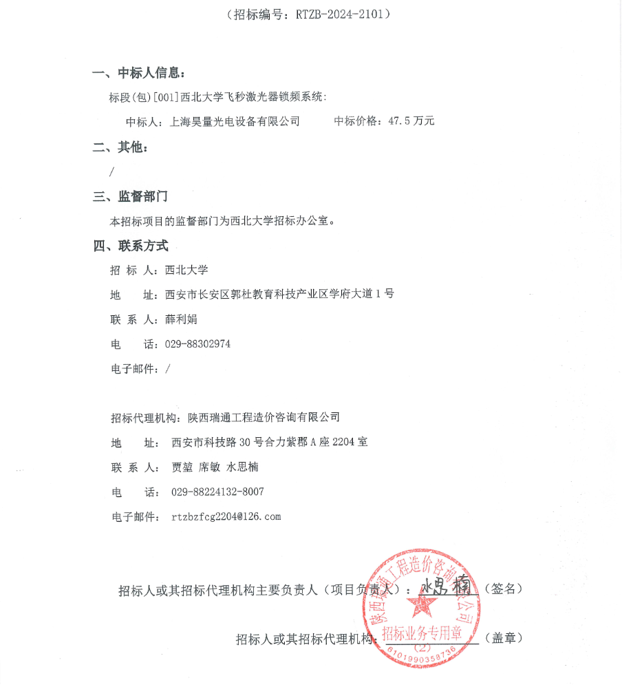 欧冠官方网站飞秒激光器锁频系统采购项目结果公告 作者: 编辑:薛利娟 时间:2024-12-02 原公告链接:http://bulletin.sntba.com/resultBulletin/2024-12-02/1991782.html