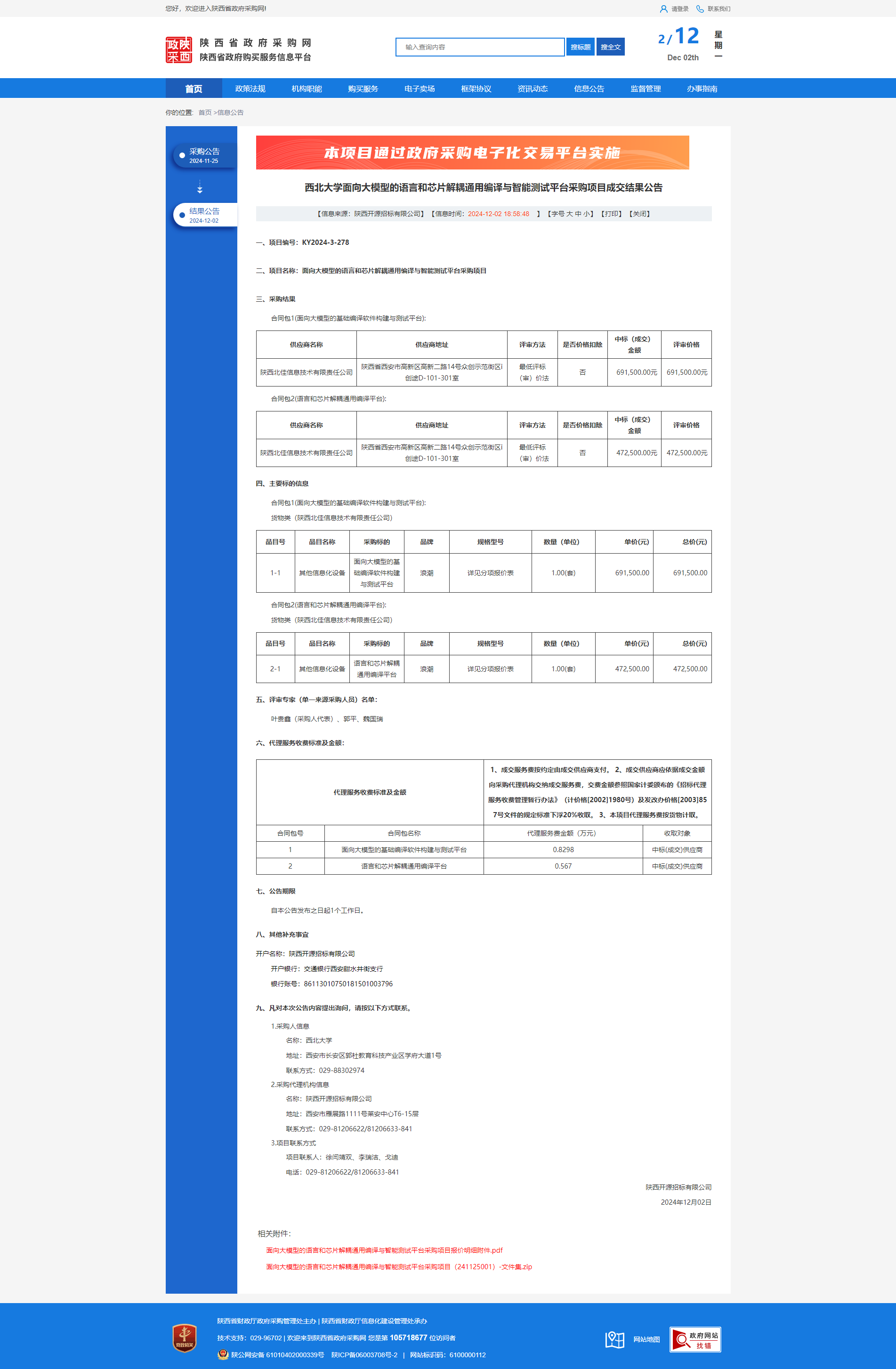 欧冠官方网站面向大模型的语言和芯片解耦通用编译与智能测试平台采购项目成交结果公告
