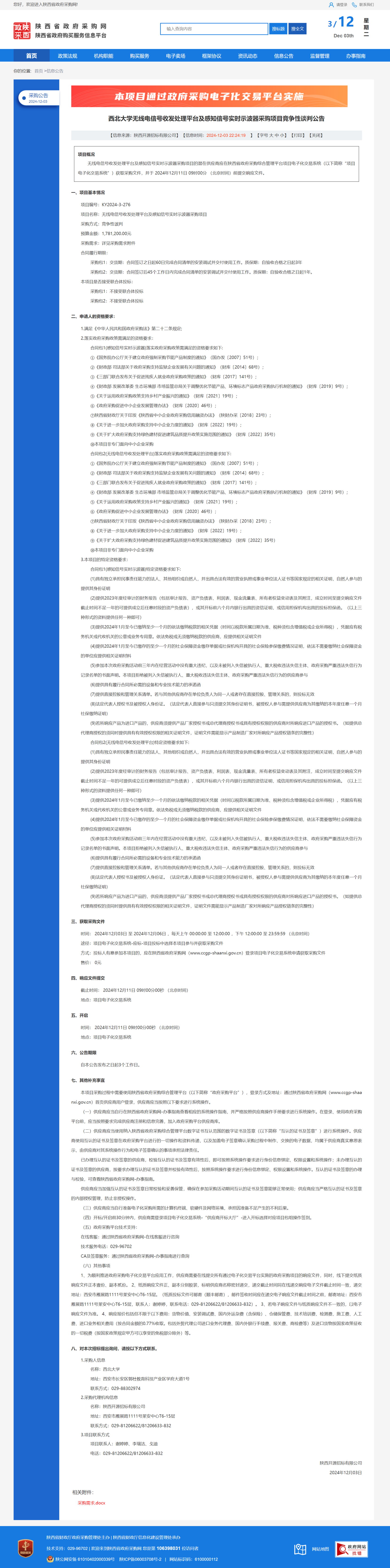 欧冠官方网站无线电信号收发处理平台及感知信号实时示波器采购项目竞争性谈判公告