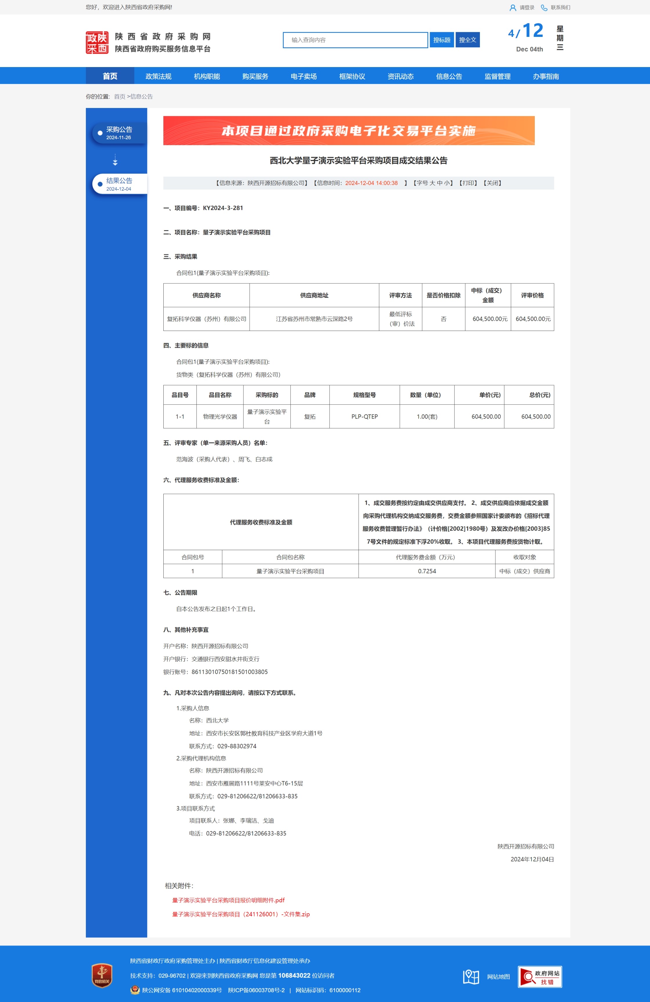 欧冠官方网站量子演示实验平台采购项目成交结果公告 作者: 编辑:薛利娟 时间:2024-12-04 原公告链接:https://www.ccgp-shaanxi.gov.cn/freecms/site/shaanxi/ggxx/info/2024/8a69c5a59218576d0193902f6a9a5c54.html?noticeType=001023¬iceId=b0c0bd1b-b206-11ef-8063-08c0eb20c666