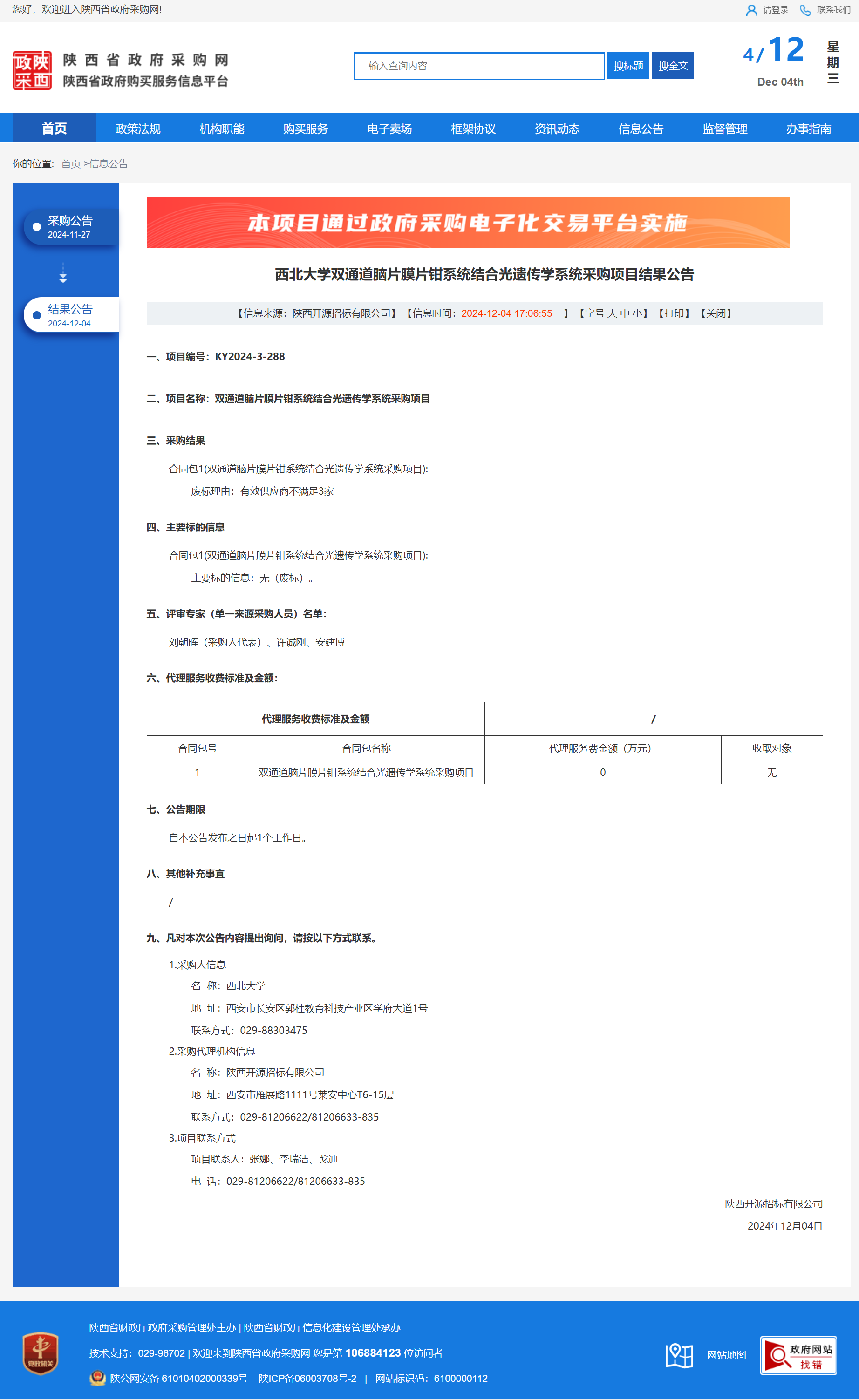 欧冠官方网站双通道脑片膜片钳系统结合光遗传学系统采购项目结果公告 作者:采购与招标办公室 编辑: 时间:2024-12-04 原公告链接:https://www.ccgp-shaanxi.gov.cn/freecms/site/shaanxi/ggxx/info/2024/8a69c95d921859f0019390e7940533eb.html?noticeType=001006¬iceId=b68a3b19-b220-11ef-8063-08c0eb20c666