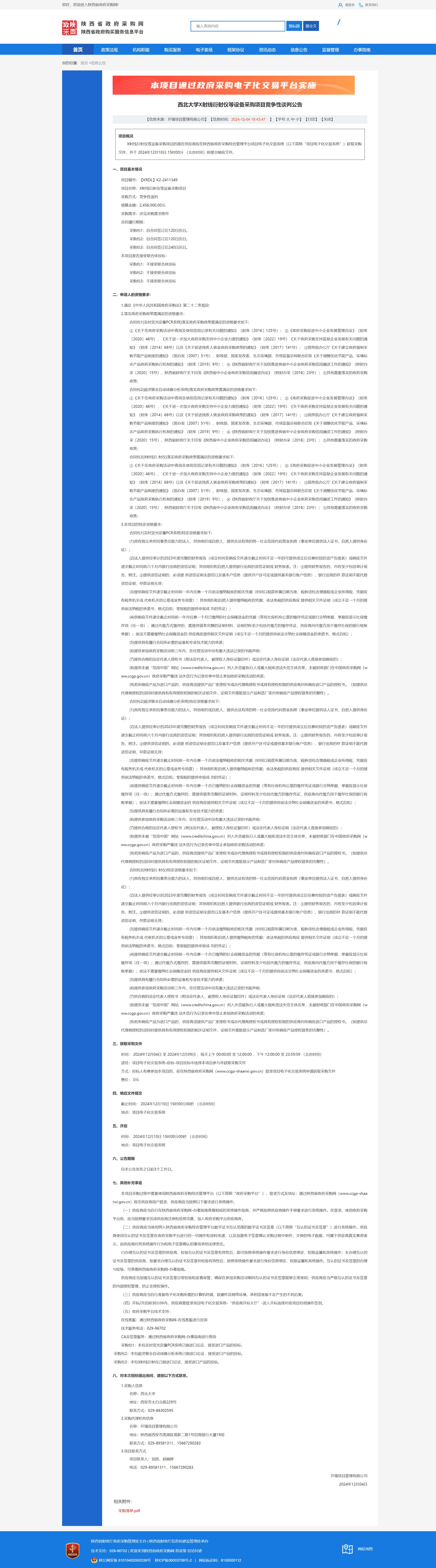 欧冠官方网站X射线衍射仪等设备采购项目竞争性谈判公告
