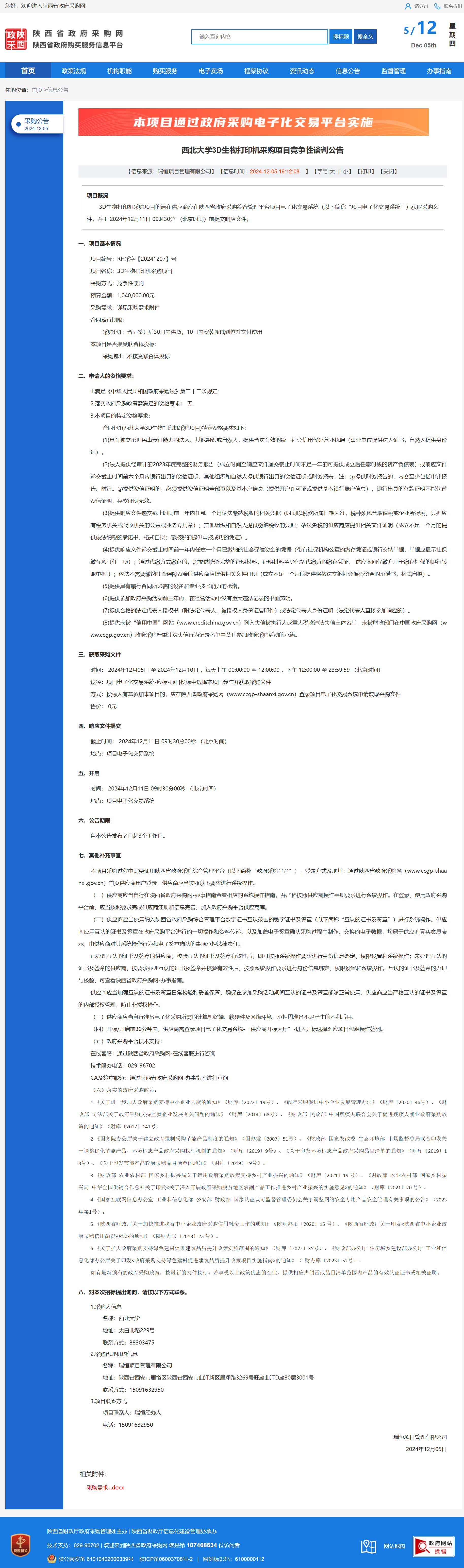 欧冠官方网站3D生物打印机采购项目竞争性谈判公告 作者:采购与招标办公室 编辑: 时间:2024-12-05 原公告链接:http://www.ccgp-shaanxi.gov.cn/freecms/site/shaanxi/ggxx/info/2024/8a69c95d921859f001939679368a3d50.html?noticeType=001013¬iceId=5fb3a087-b2fb-11ef-8063-08c0eb20c666