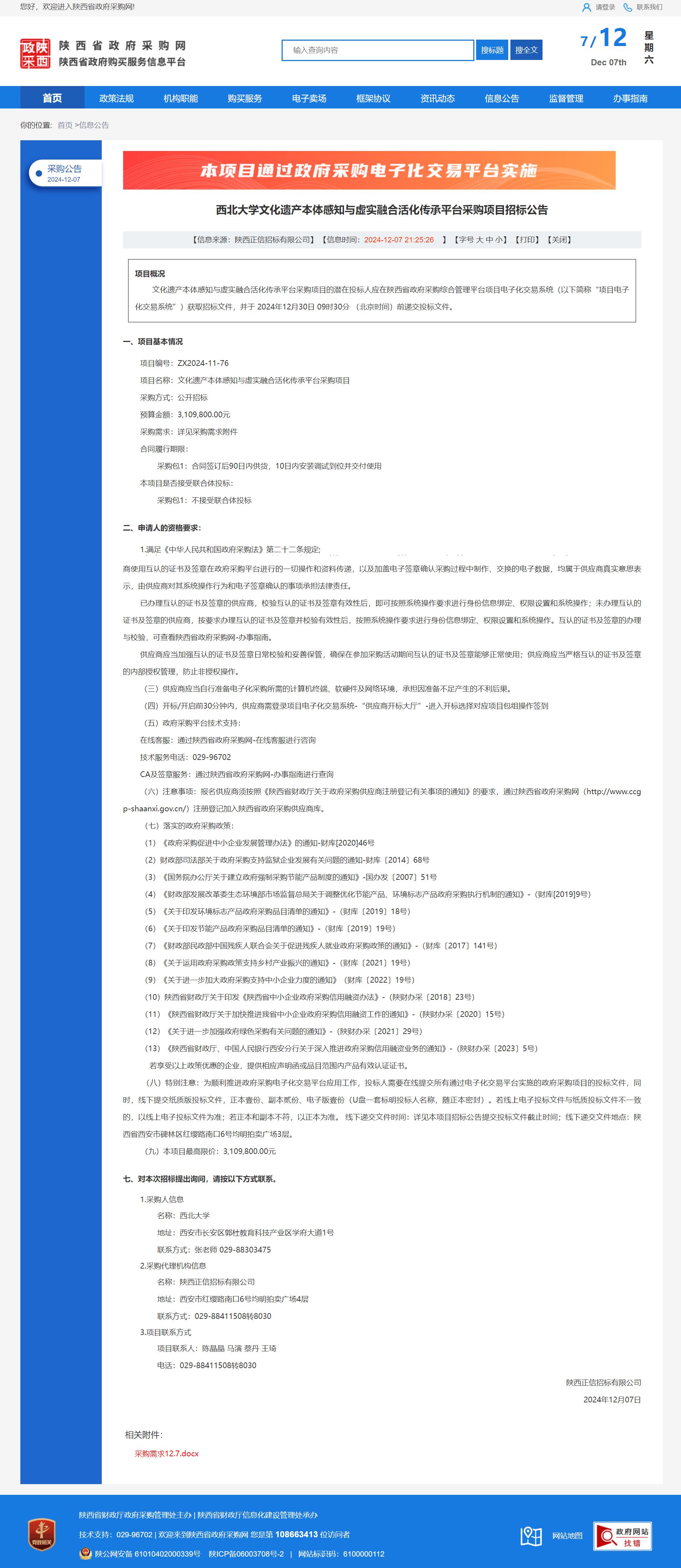 欧冠官方网站文化遗产本体感知与虚实融合活化传承平台采购项目招标公告