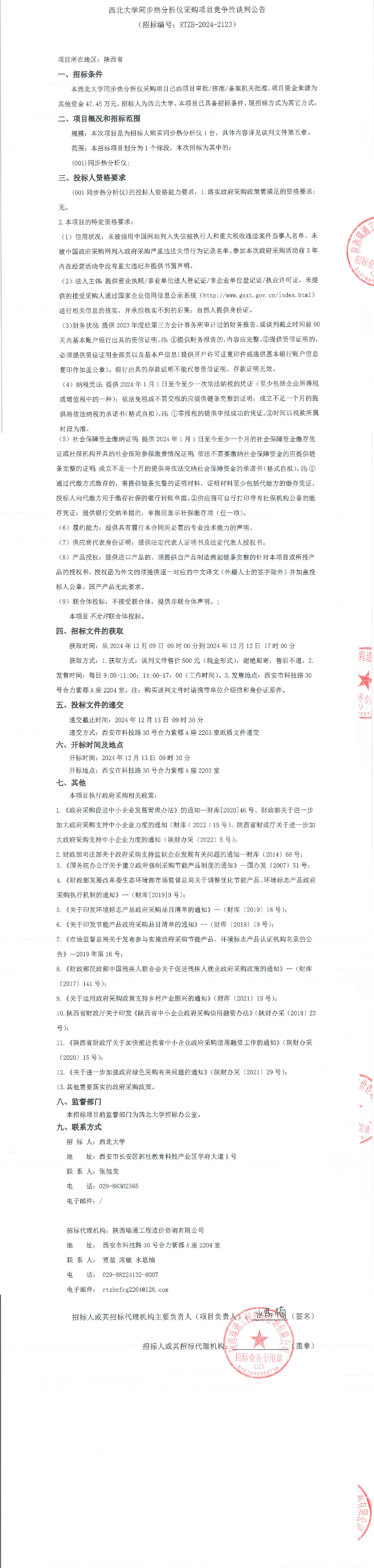 欧冠官方网站同步热分析仪采购项目竞争性谈判公告