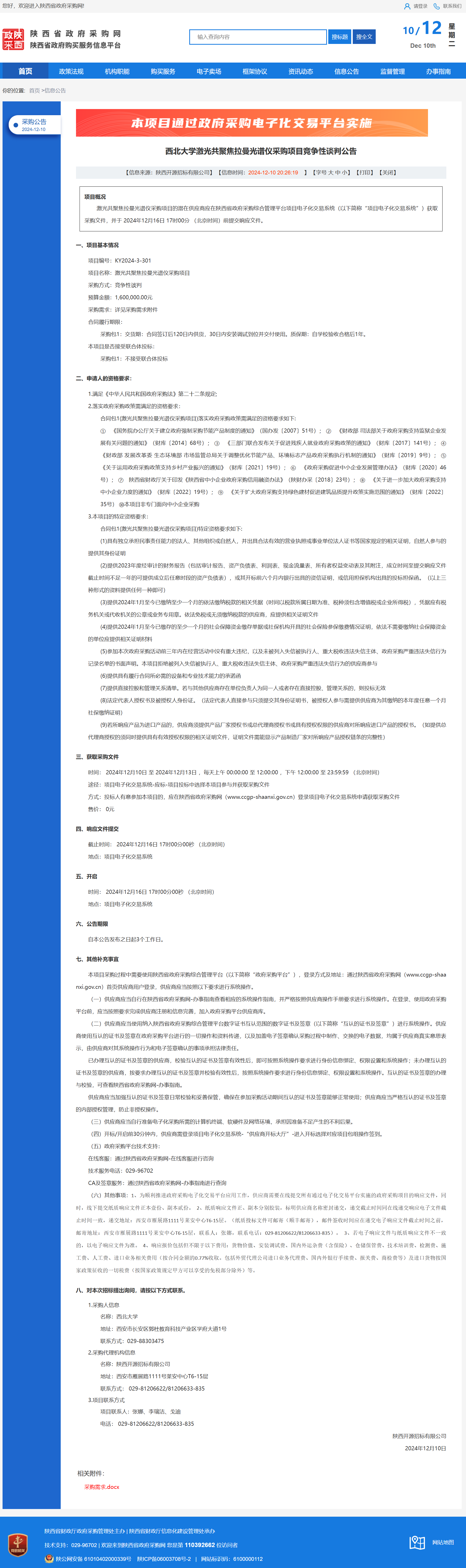 欧冠官方网站激光共聚焦拉曼光谱仪采购项目竞争性谈判公告 作者:采购与招标办公室 编辑: 时间:2024-12-10 原公告链接:https://www.ccgp-shaanxi.gov.cn/freecms/site/shaanxi/ggxx/info/2024/8a69c5a59218576d0193b081eb986c20.html?noticeType=001013¬iceId=937b25d9-b6f3-11ef-8063-08c0eb20c666