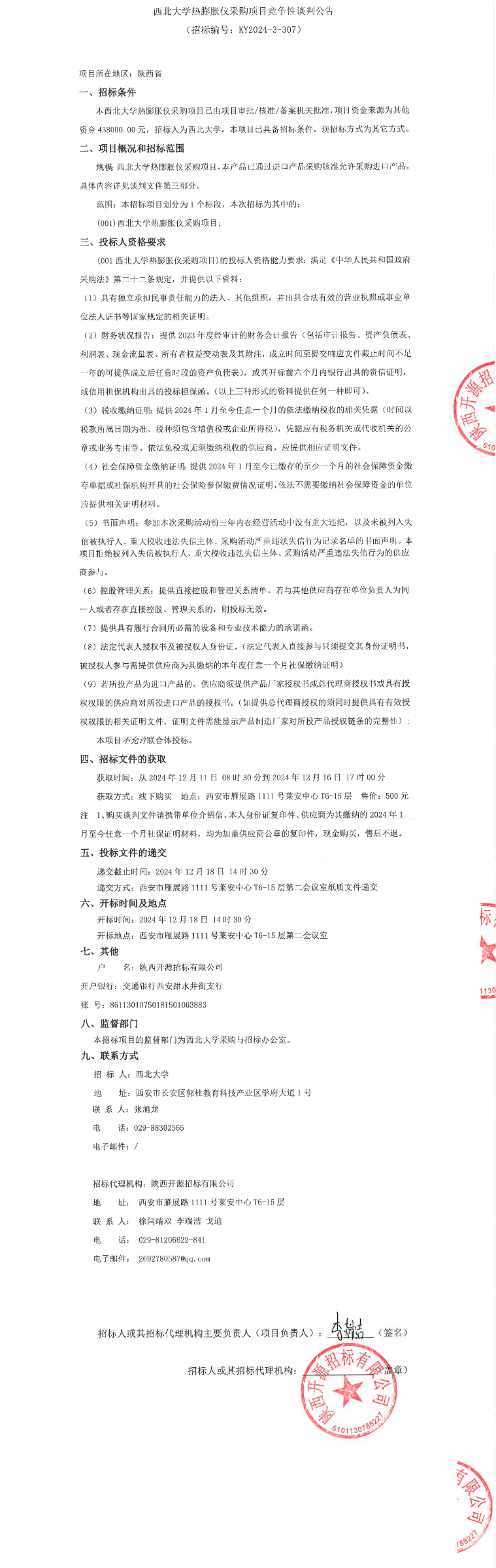 欧冠官方网站热膨胀仪采购项目竞争性谈判公告