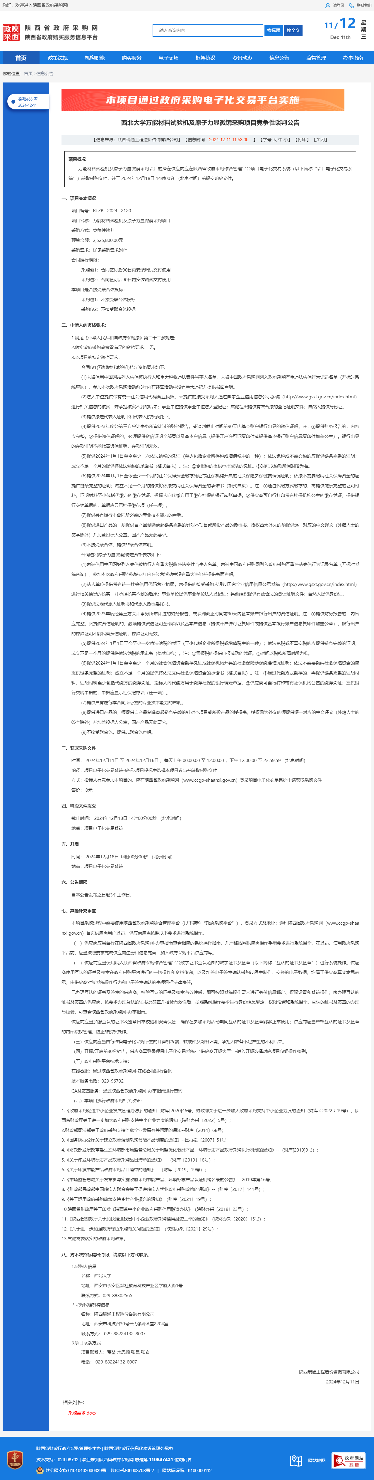 欧冠官方网站万能材料试验机及原子力显微镜采购项目竞争性谈判公告