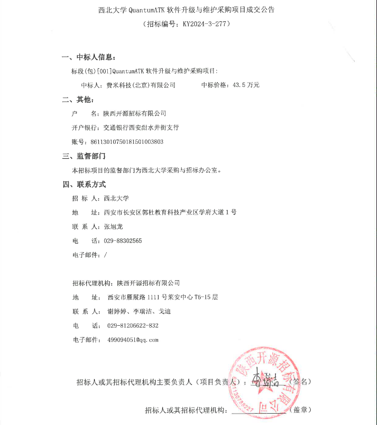 欧冠官方网站QuantumATK软件升级与维护采购项目成交公告