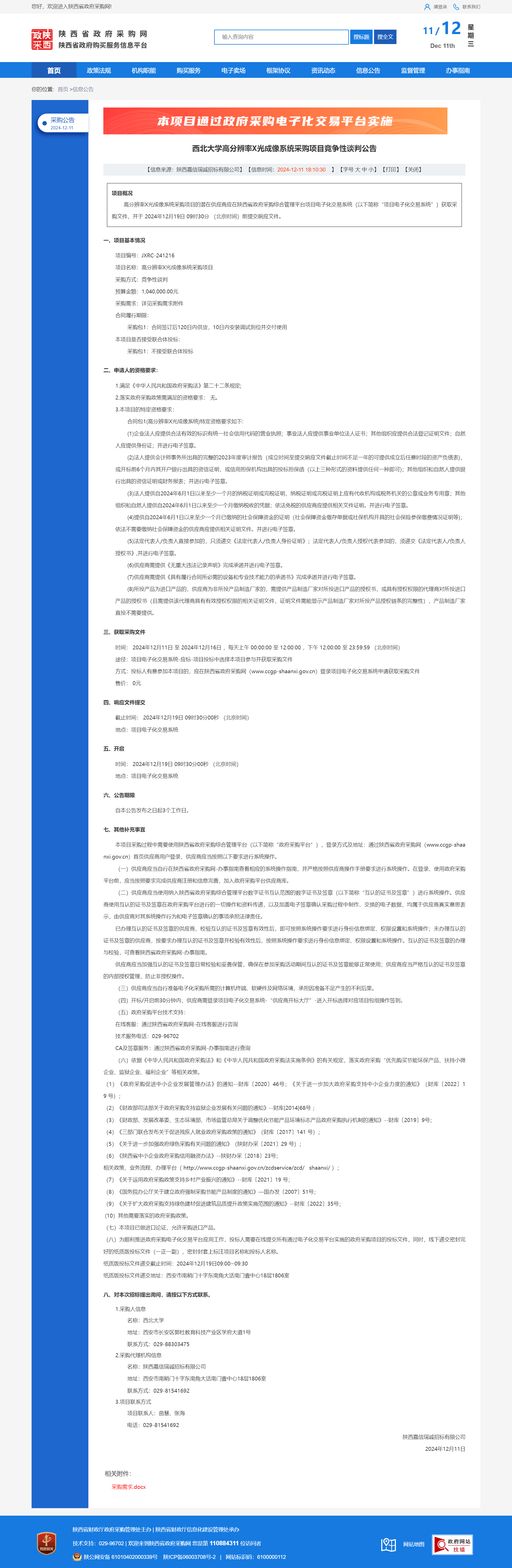 欧冠官方网站高分辨率X光成像系统采购项目竞争性谈判公告 作者:采购与招标办公室 编辑: 时间:2024-12-11 原公告链接:https://www.ccgp-shaanxi.gov.cn/freecms/site/shaanxi/ggxx/info/2024/8a69c251921857370193b5010b9638d3.html?noticeType=001013¬iceId=c4fa68de-b7a9-11ef-8063-08c0eb20c666
