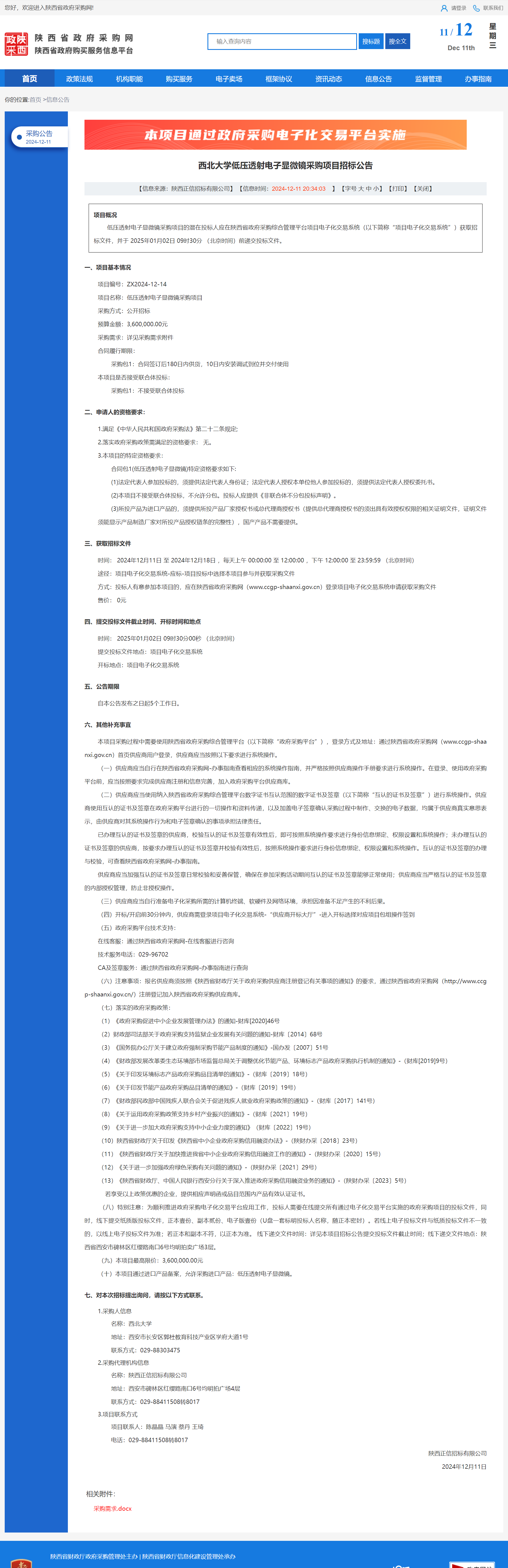欧冠官方网站低压透射电子显微镜采购项目招标公告 作者:采购与招标办公室 编辑: 时间:2024-12-11 原公告链接:https://www.ccgp-shaanxi.gov.cn/freecms/site/shaanxi/ggxx/info/2024/8a69c251921857370193b58a2eef18ef.html?noticeType=001011¬iceId=d31c6b03-b7bd-11ef-8063-08c0eb20c666