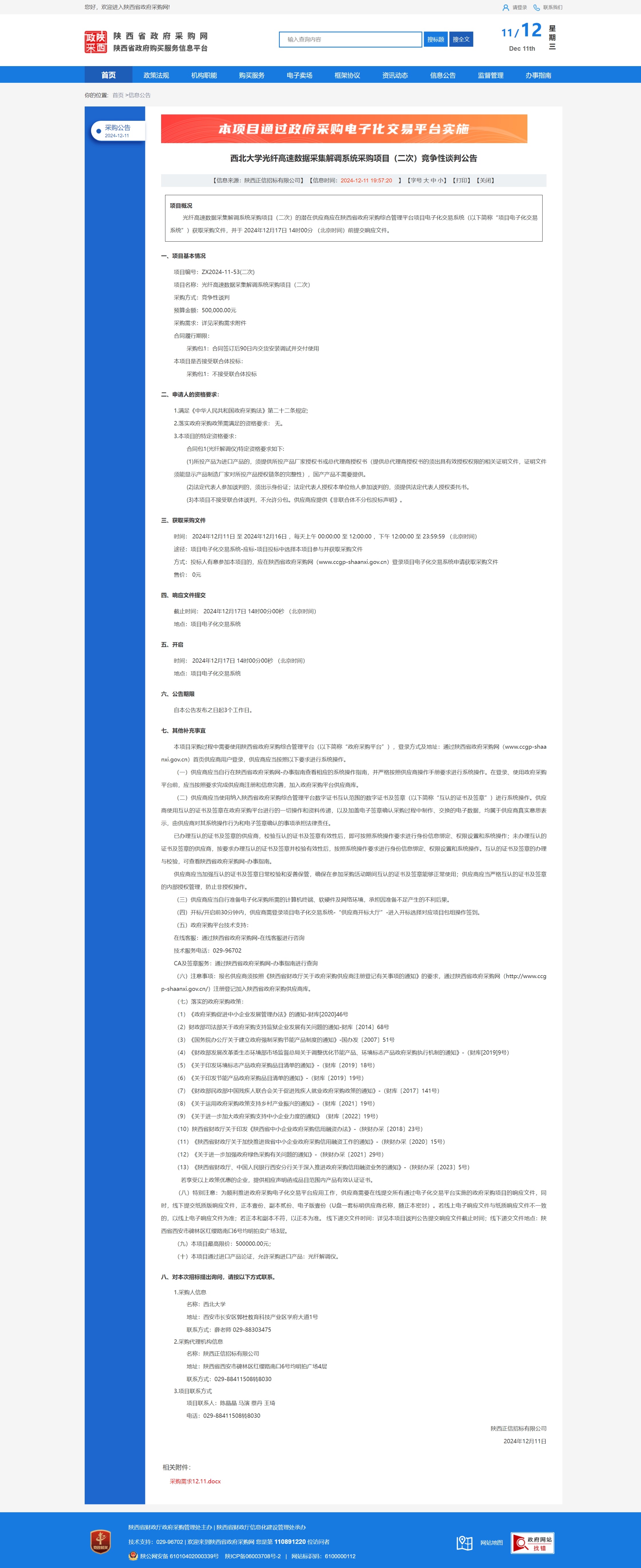 欧冠官方网站光纤高速数据采集解调系统采购项目(二次)竞争性谈判公告 作者: 编辑:薛利娟 时间:2024-12-11 原公告链接:https://www.ccgp-shaanxi.gov.cn/freecms/site/shaanxi/ggxx/info/2024/8a69c251921857370193b57e9b8200ae.html?noticeType=001013¬iceId=b1b907cc-b7b8-11ef-8063-08c0eb20c666