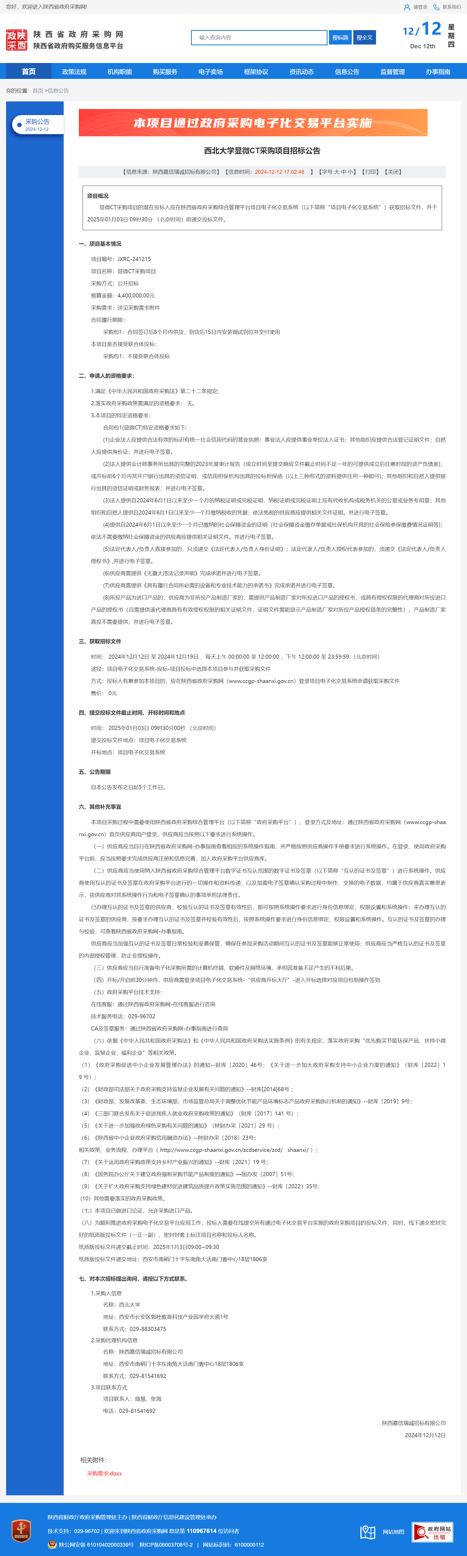 欧冠官方网站显微CT采购项目招标公告 作者:采购与招标办公室 编辑: 时间:2024-12-12 原公告链接:https://www.ccgp-shaanxi.gov.cn/freecms/site/shaanxi/ggxx/info/2024/8a69c5a59218576d0193ba1292507a9d.html?noticeType=001011¬iceId=7add7000-b869-11ef-8063-08c0eb20c666