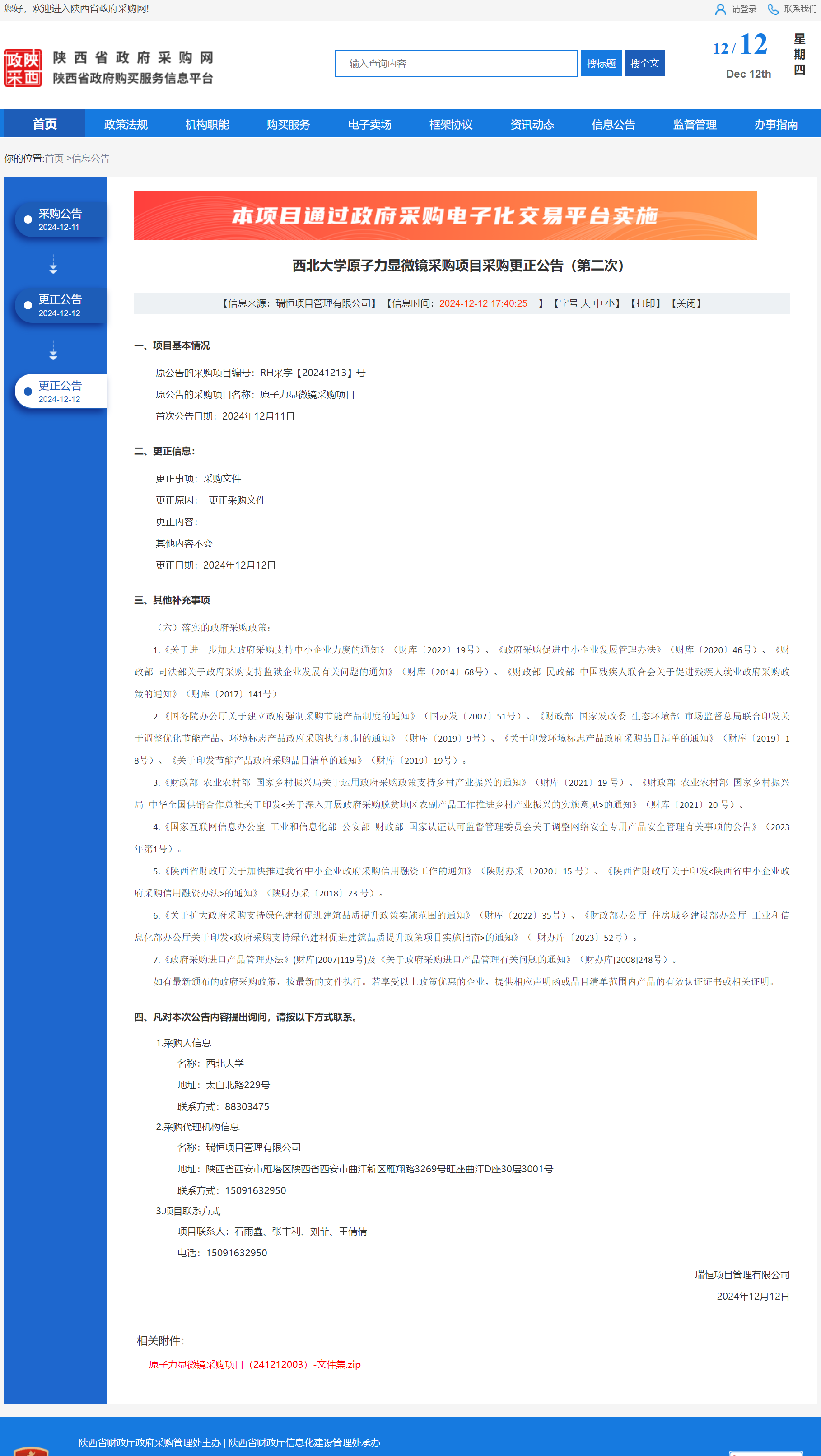 欧冠官方网站原子力显微镜采购项目采购更正公告(第二次) 作者:采购与招标办公室 编辑: 时间:2024-12-12 原公告链接:https://www.ccgp-shaanxi.gov.cn/freecms/site/shaanxi/ggxx/info/2024/8a69c5a59218576d0193ba3c419e1460.html?noticeType=001031¬iceId=bbffc791-b86e-11ef-8063-08c0eb20c666