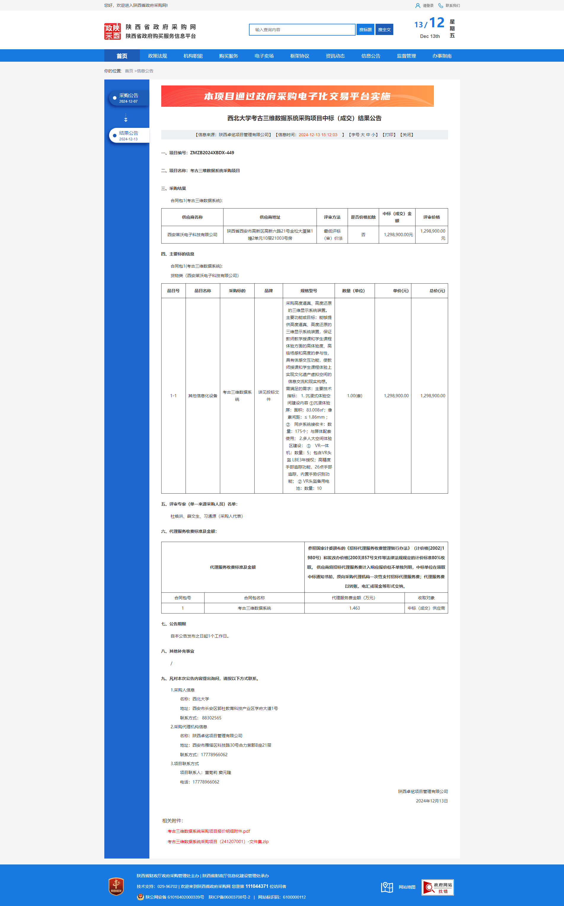 欧冠官方网站考古三维数据系统采购项目中标(成交)结果公告