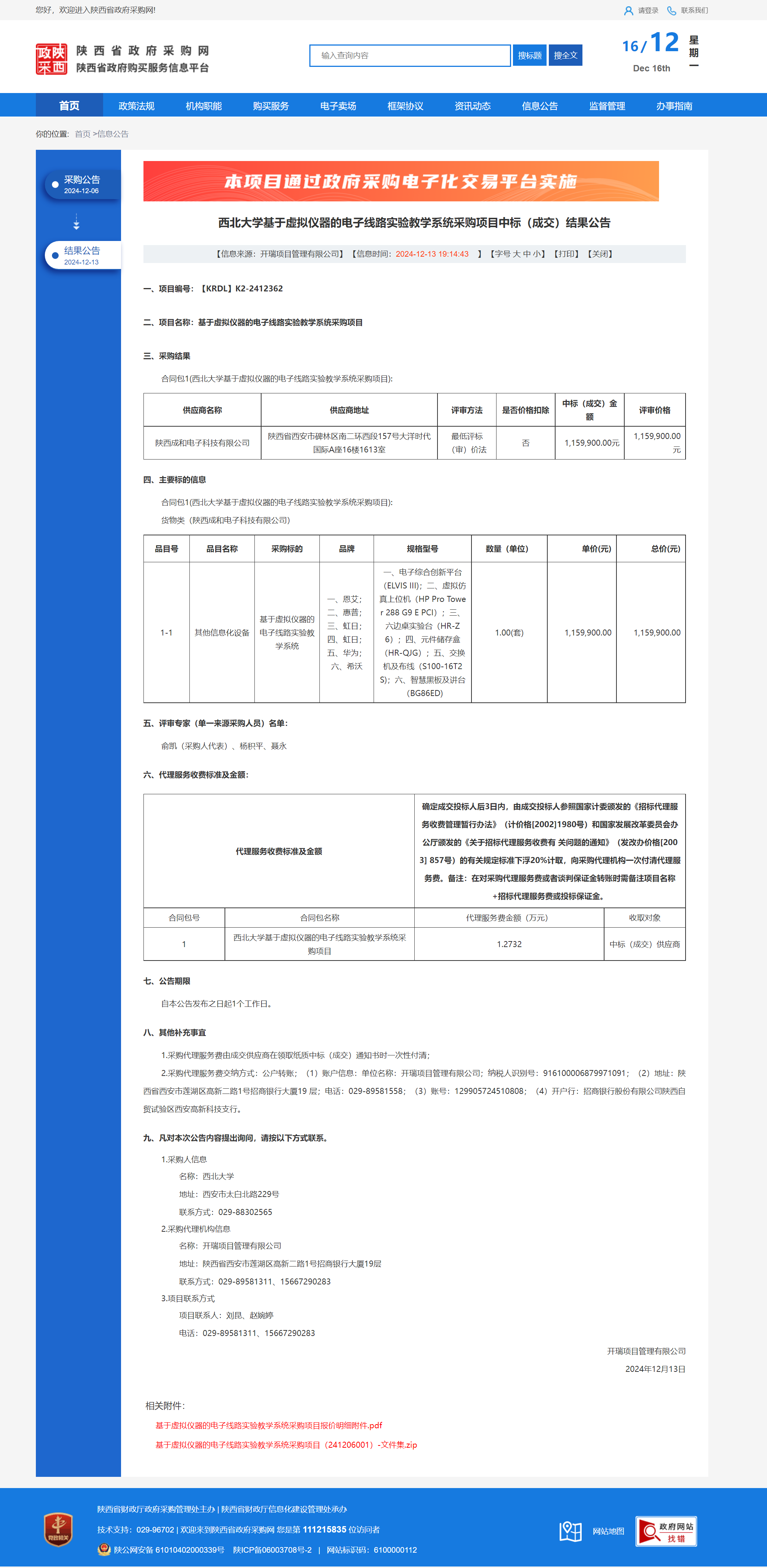 欧冠官方网站基于虚拟仪器的电子线路实验教学系统采购项目中标(成交)结果公告